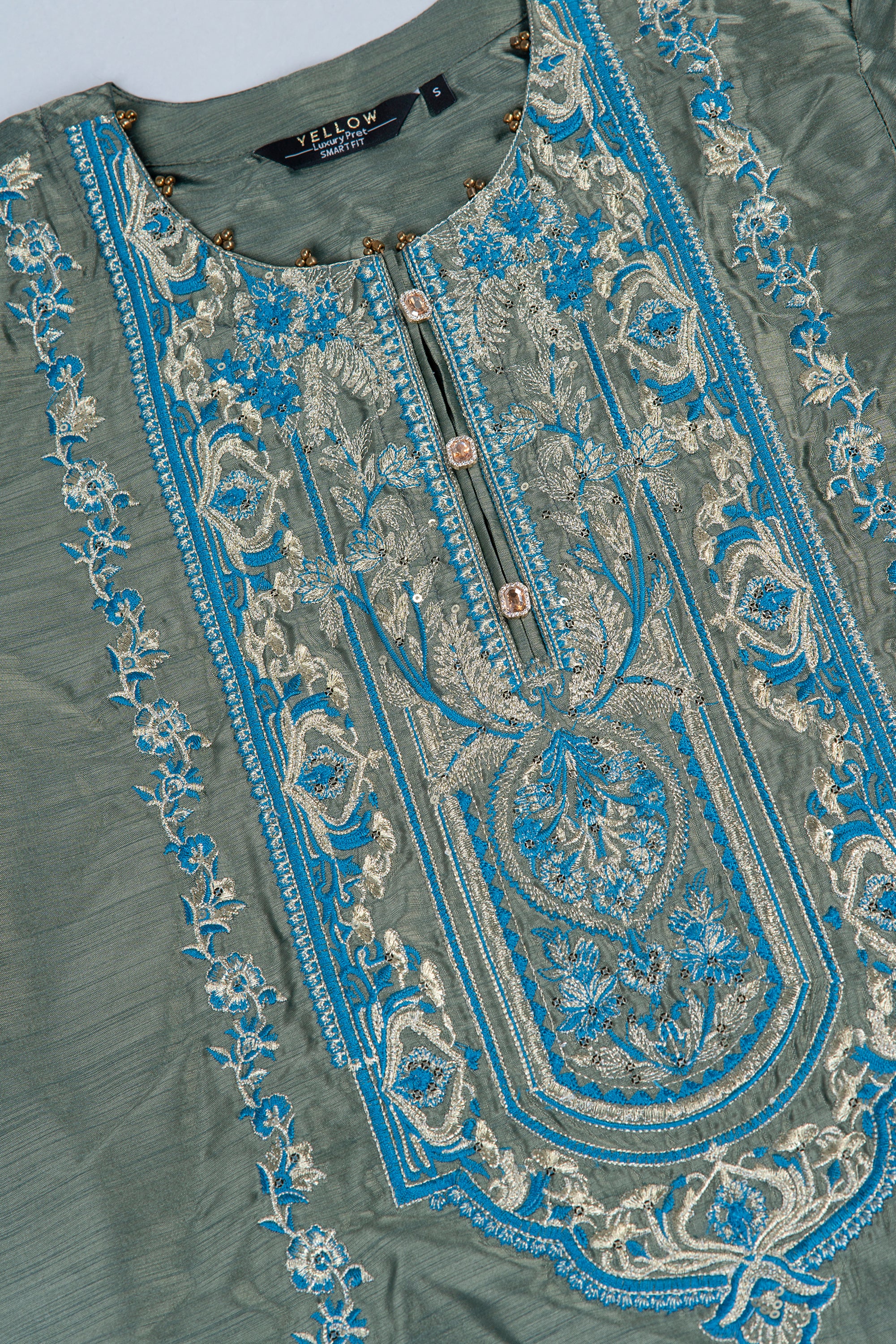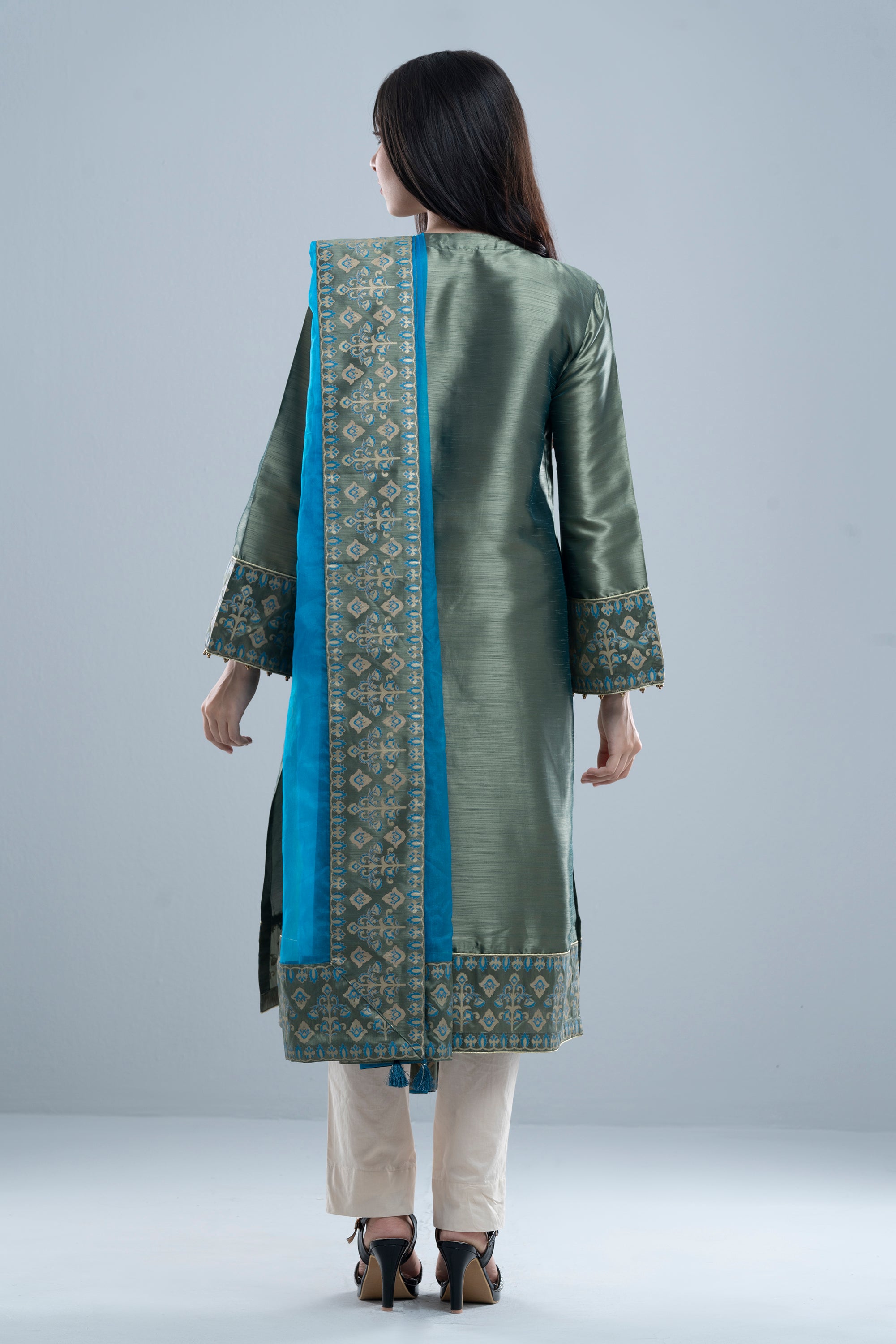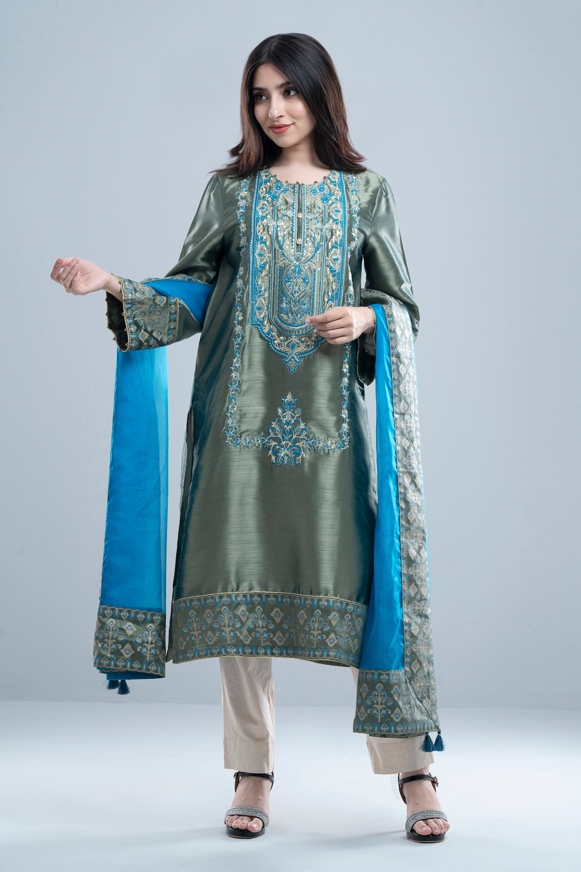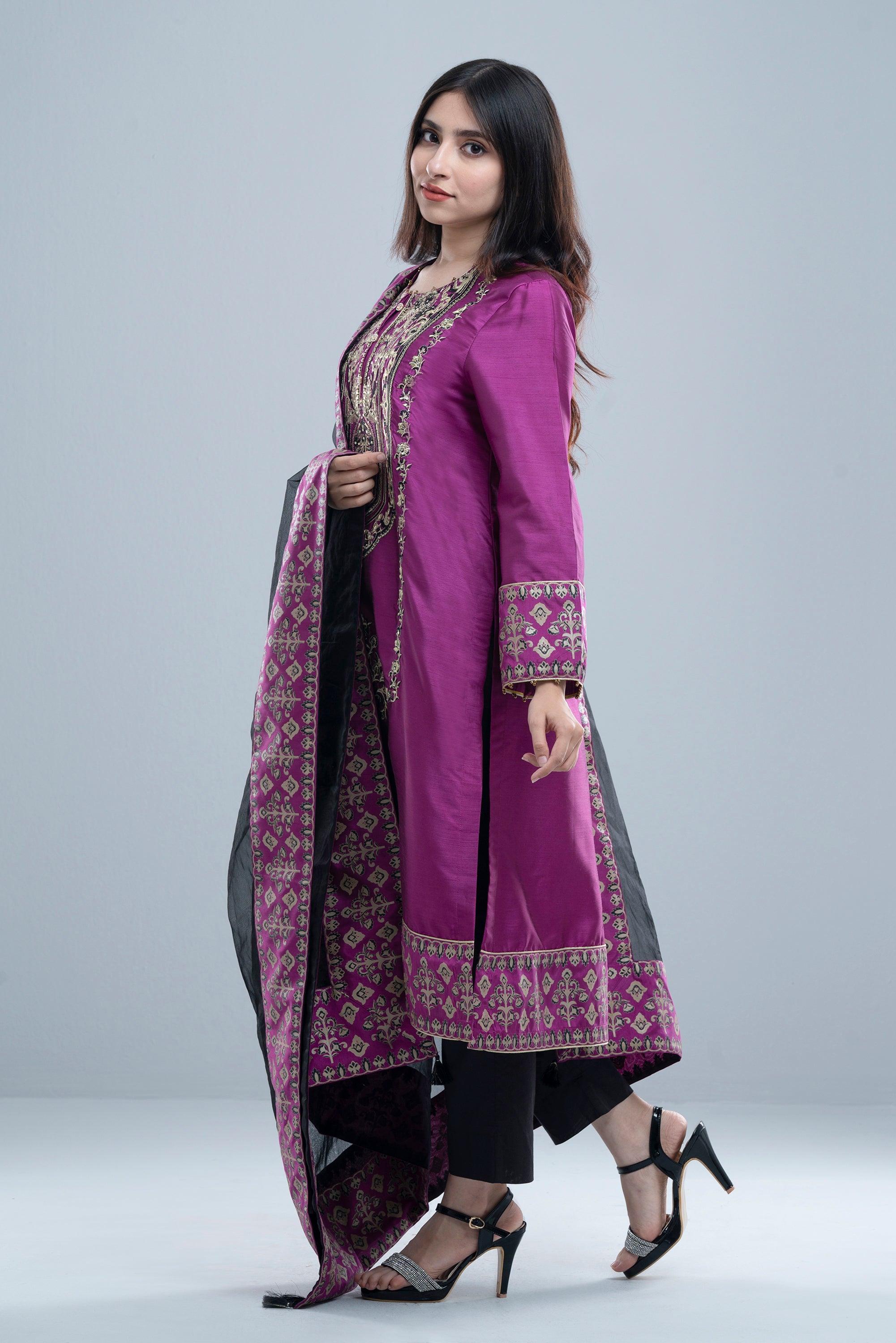 Ready to wear Embroidery with Print two piece Formal set with organza dupatta