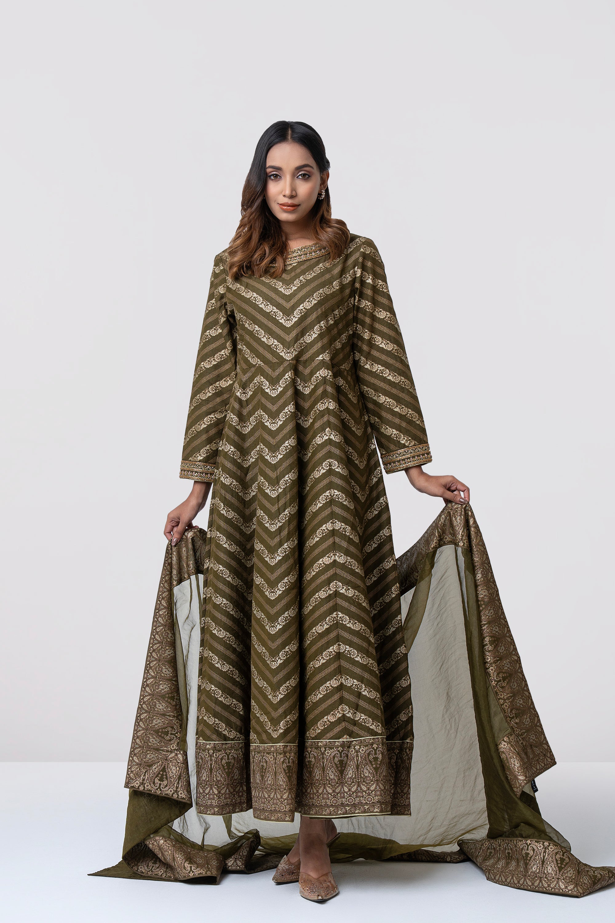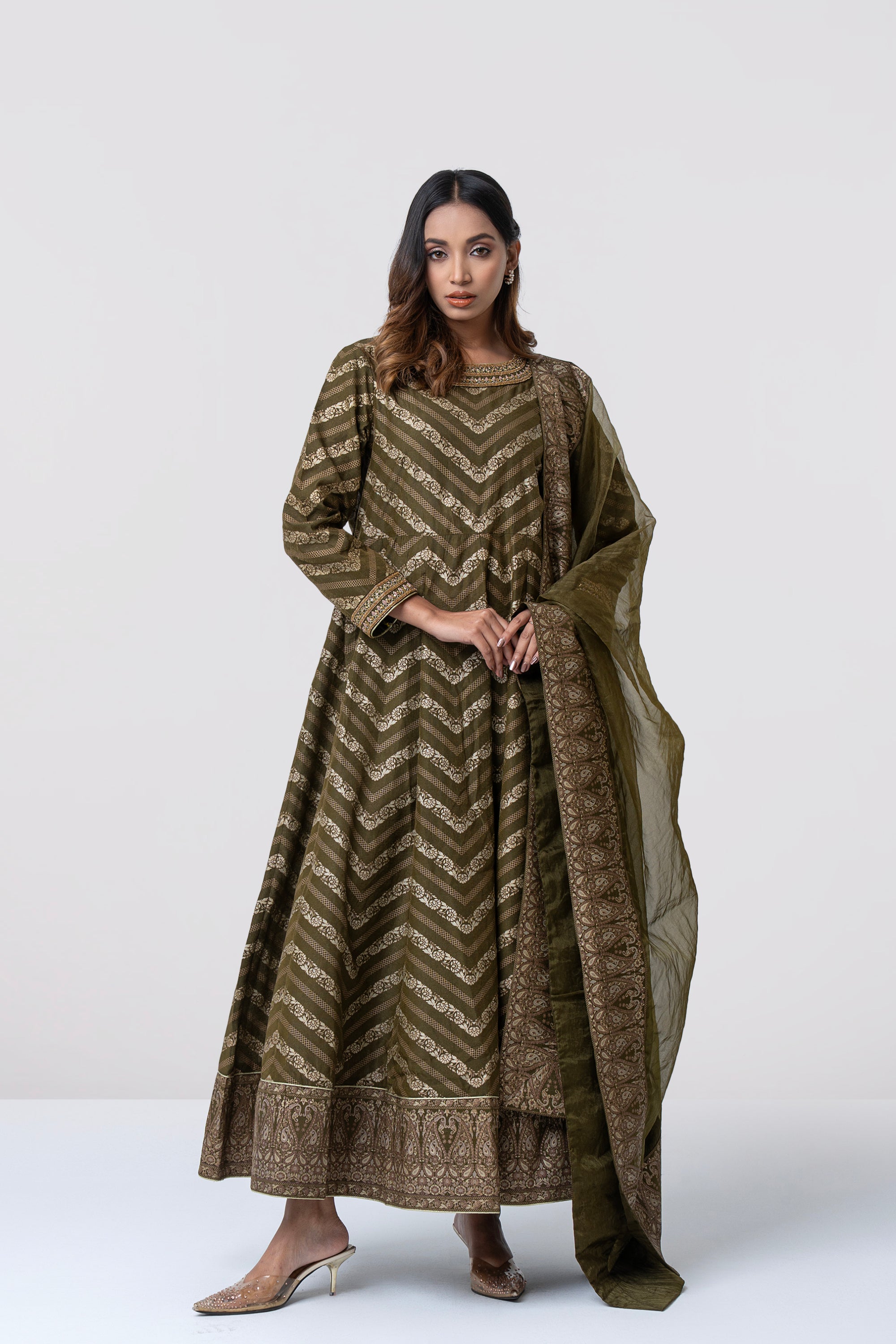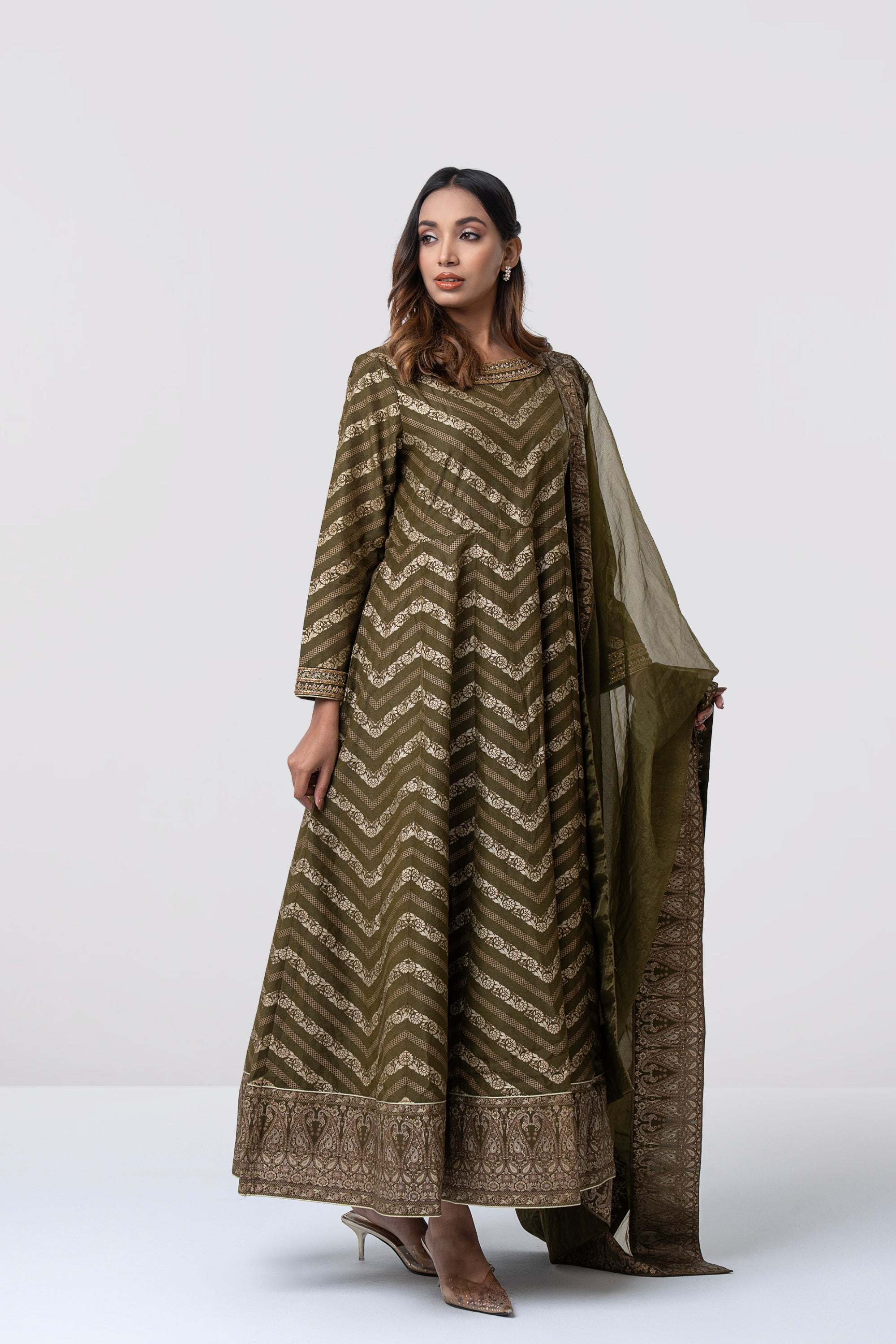 • Organza dupatta with printed border patch