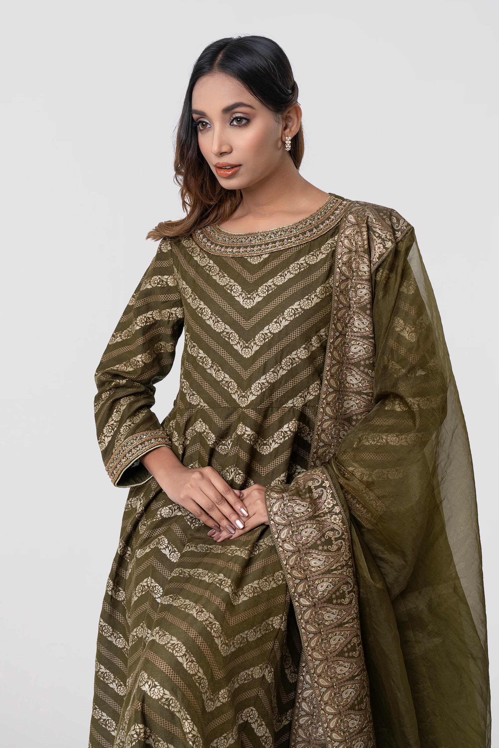 Smart Fit Embellished Two-Piece Formal Ethnic Set with Organza Dupatta