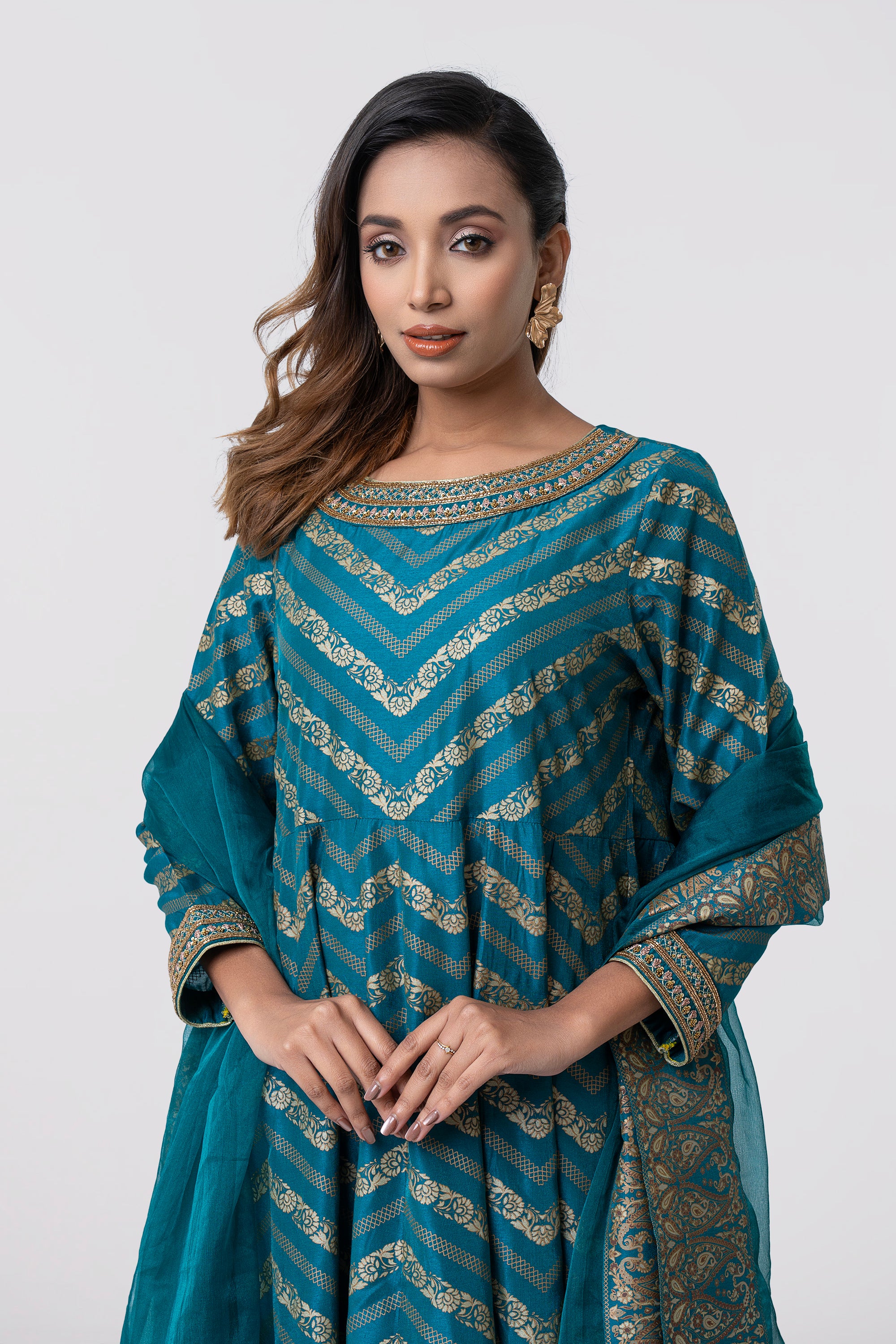 • Round neck embellished with heavy hand work