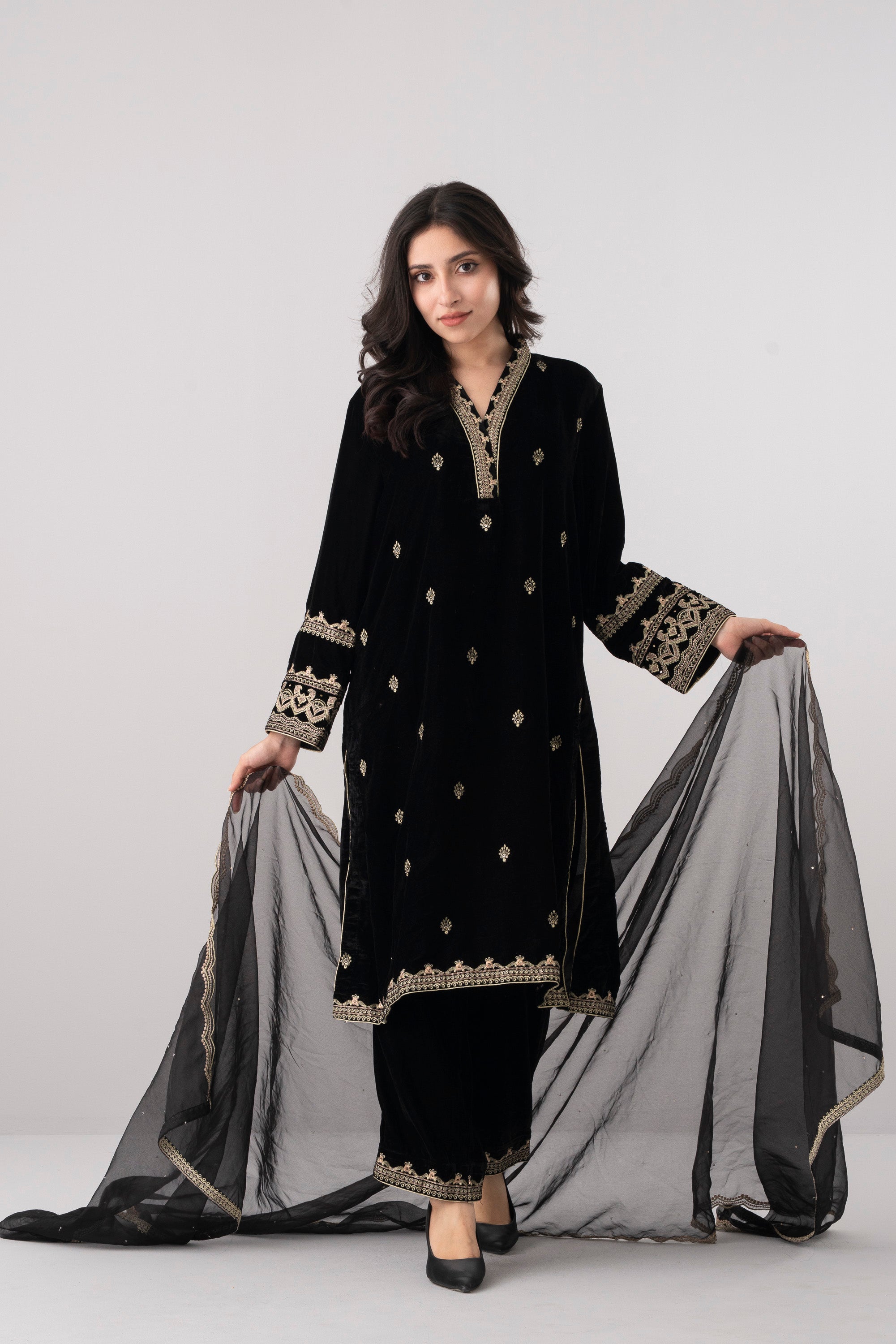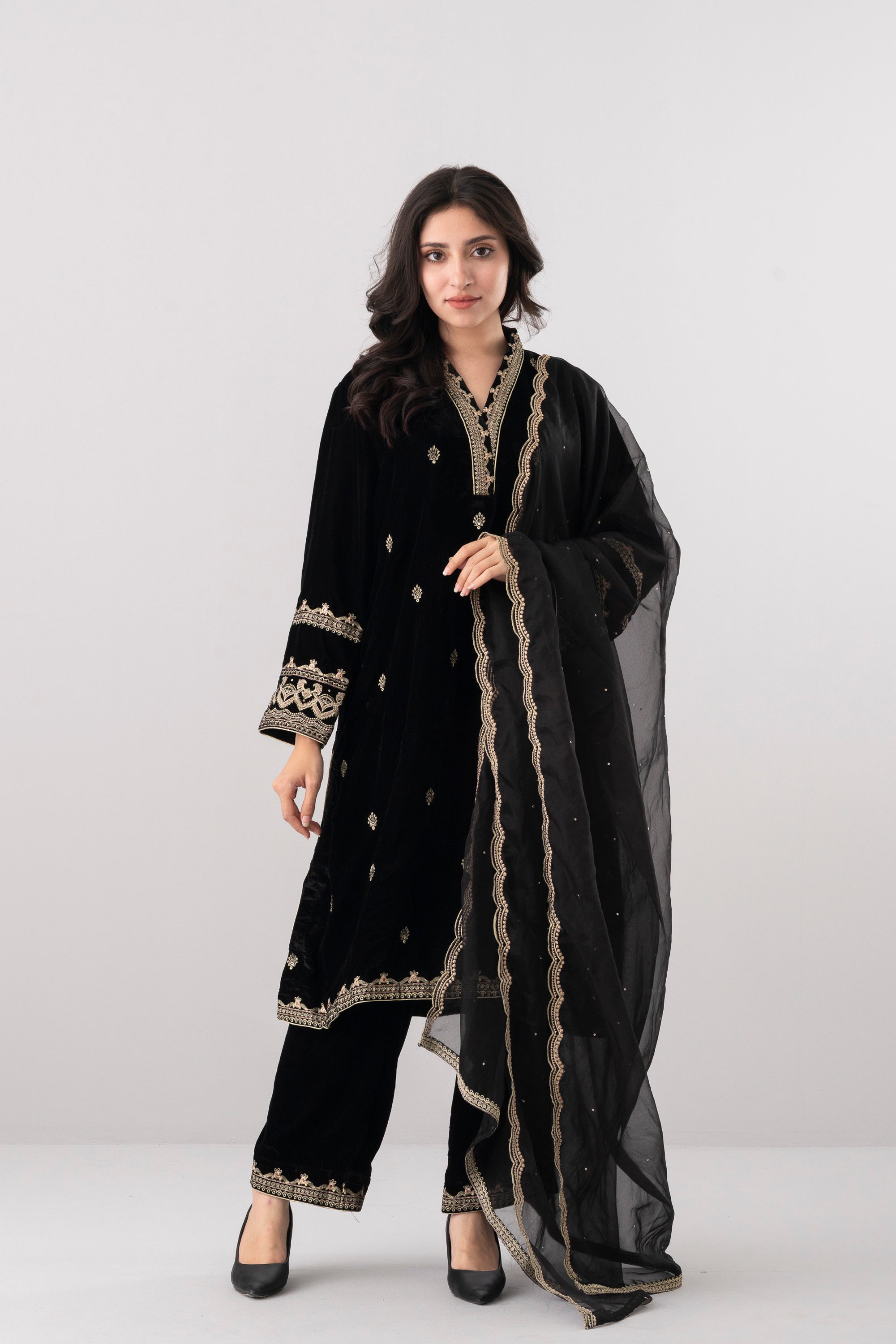 Ready to wear heavy embellished three piece Formal with organza dupatta