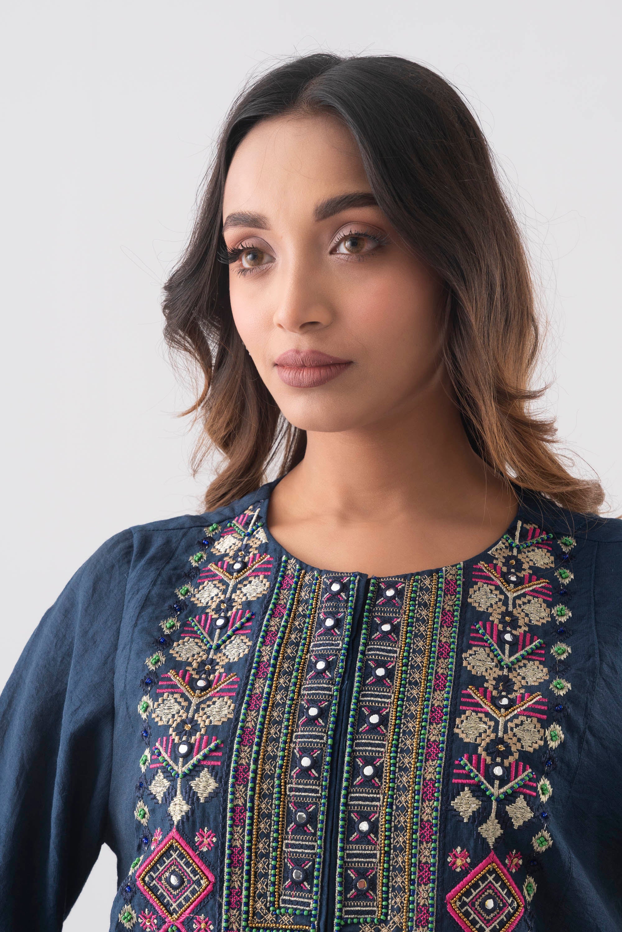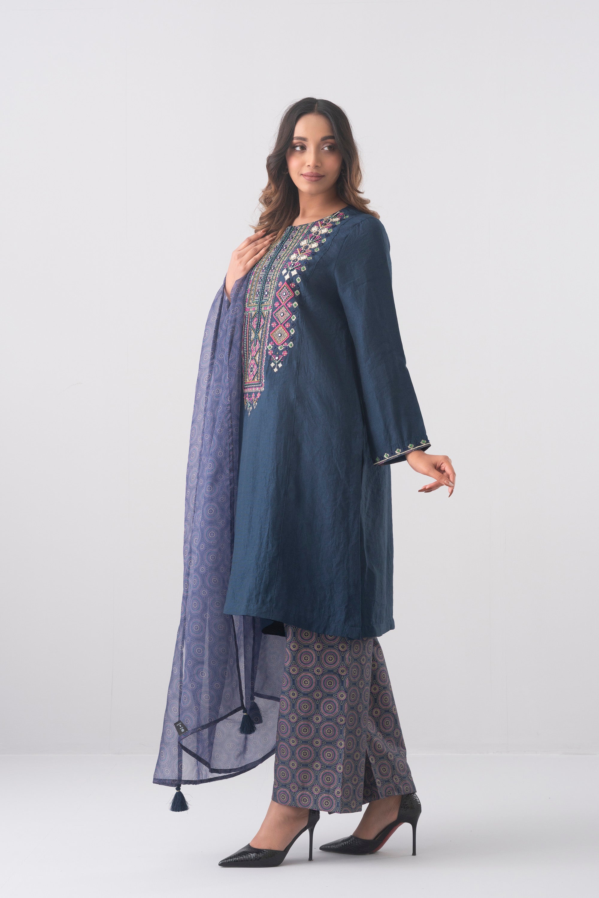 Ready to wear three piece Semi Formal with organza printed dupatta.