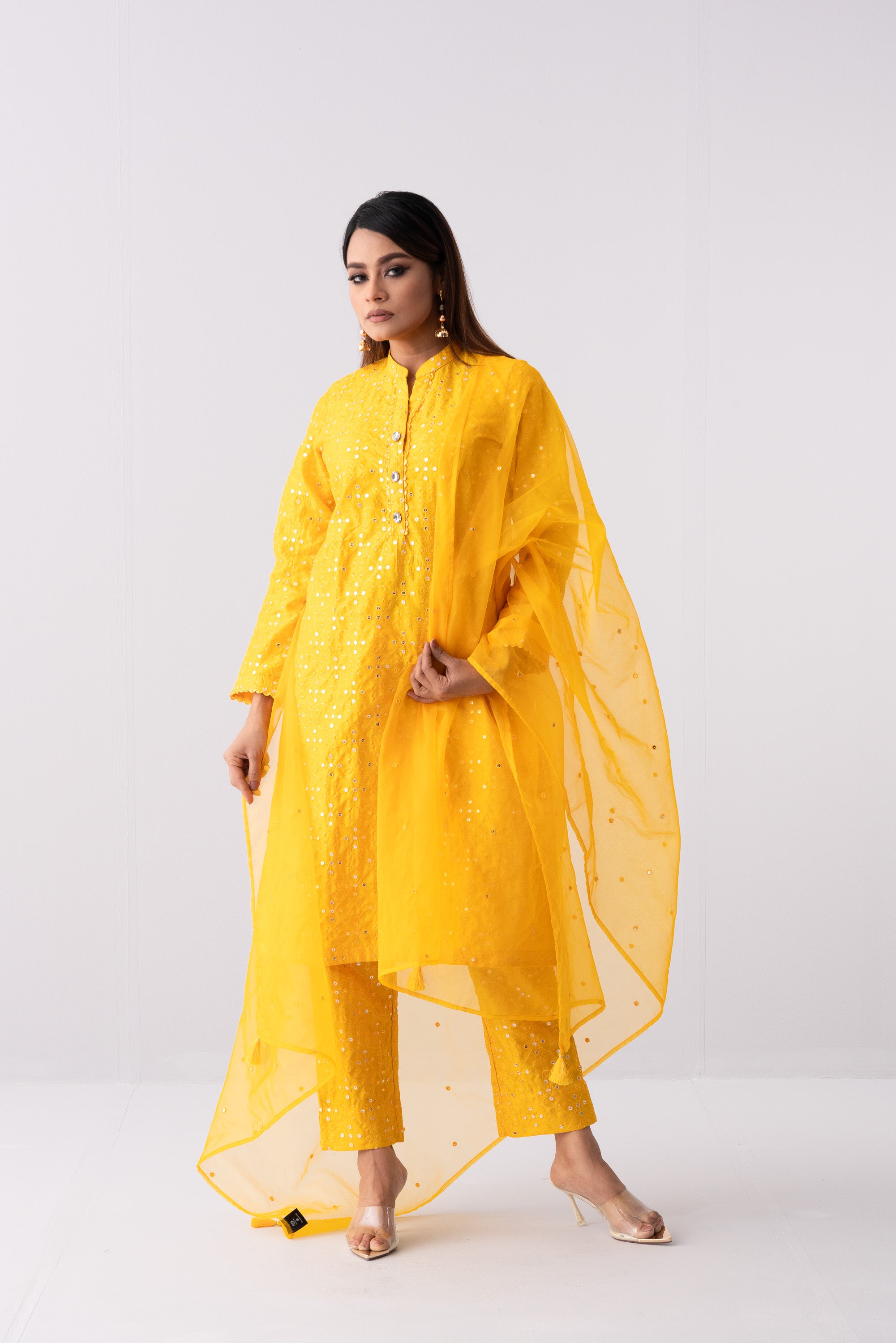 Ready to wear three piece Formal with organza dupatta.