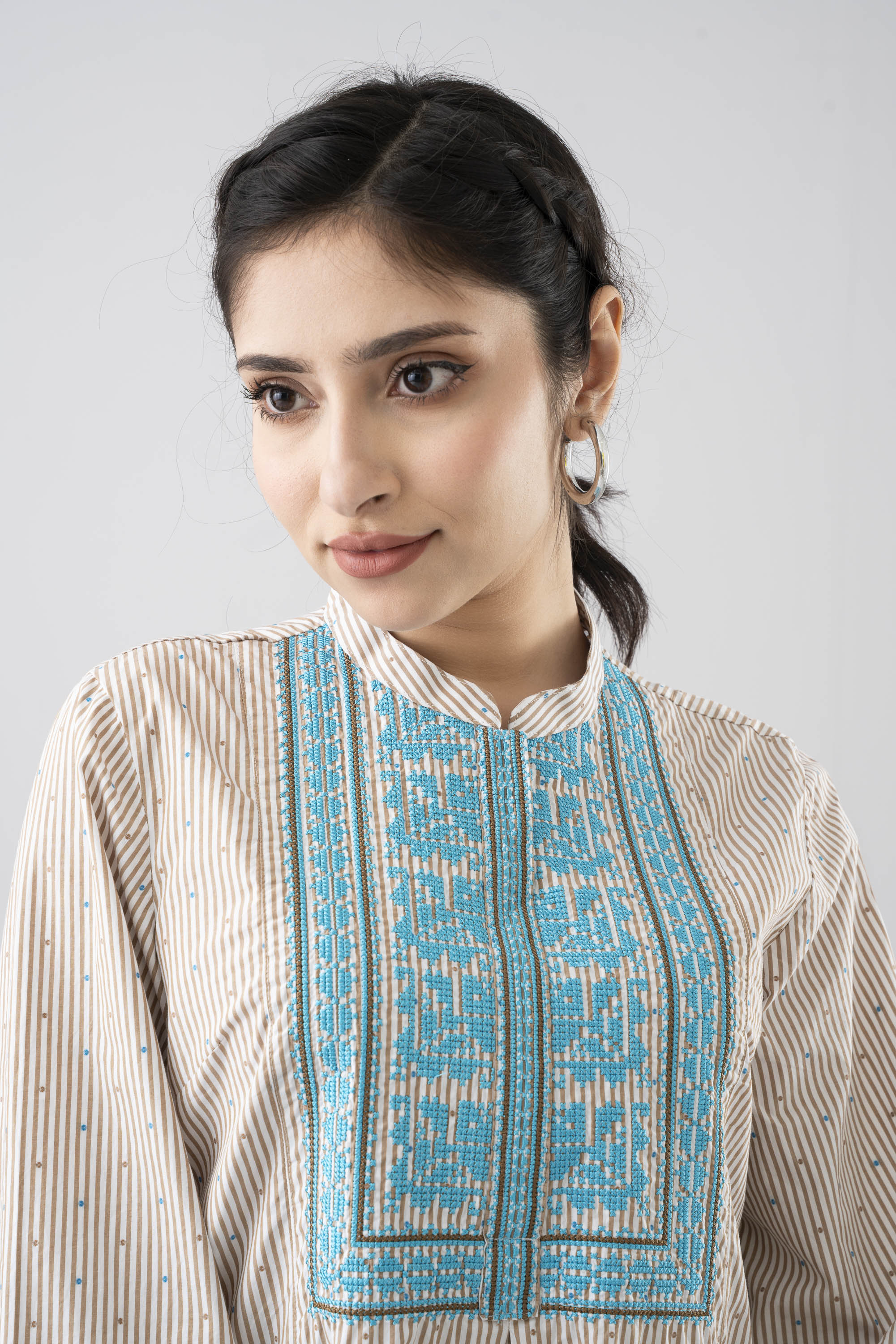 A smart-fit, long length single-piece kurta. Perfect for daily wear with a neat, modern silhouette.