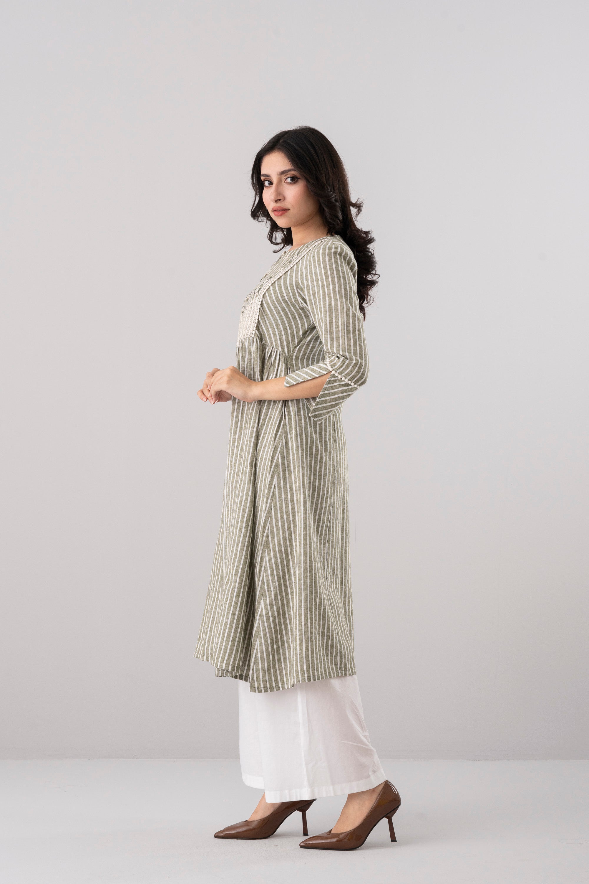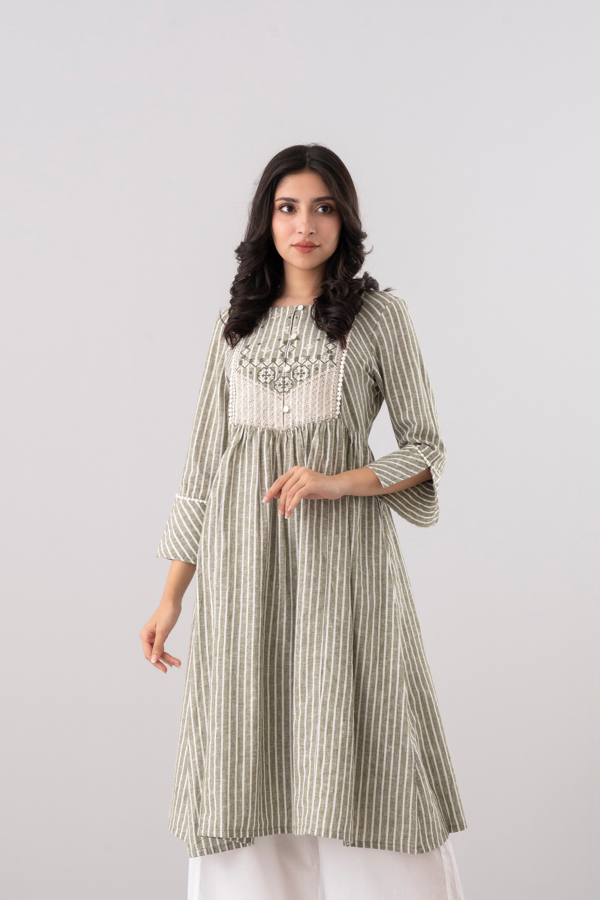A smart-fit, long length single-piece kurta, perfect for daily wear with a neat, modern silhouette.