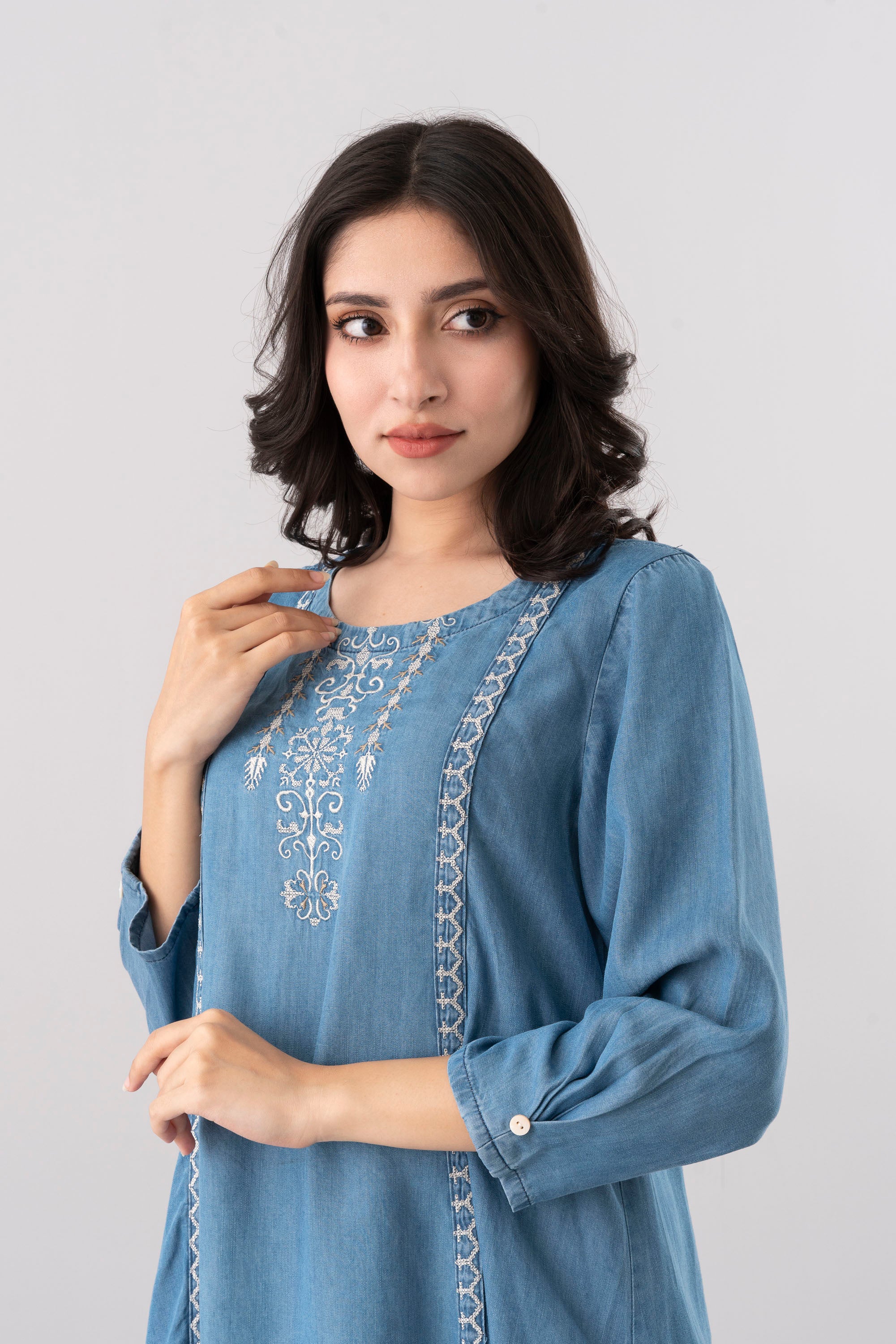 A smart-fit, long length single-piece kurta. Perfect for daily wear with a neat, modern silhouette.