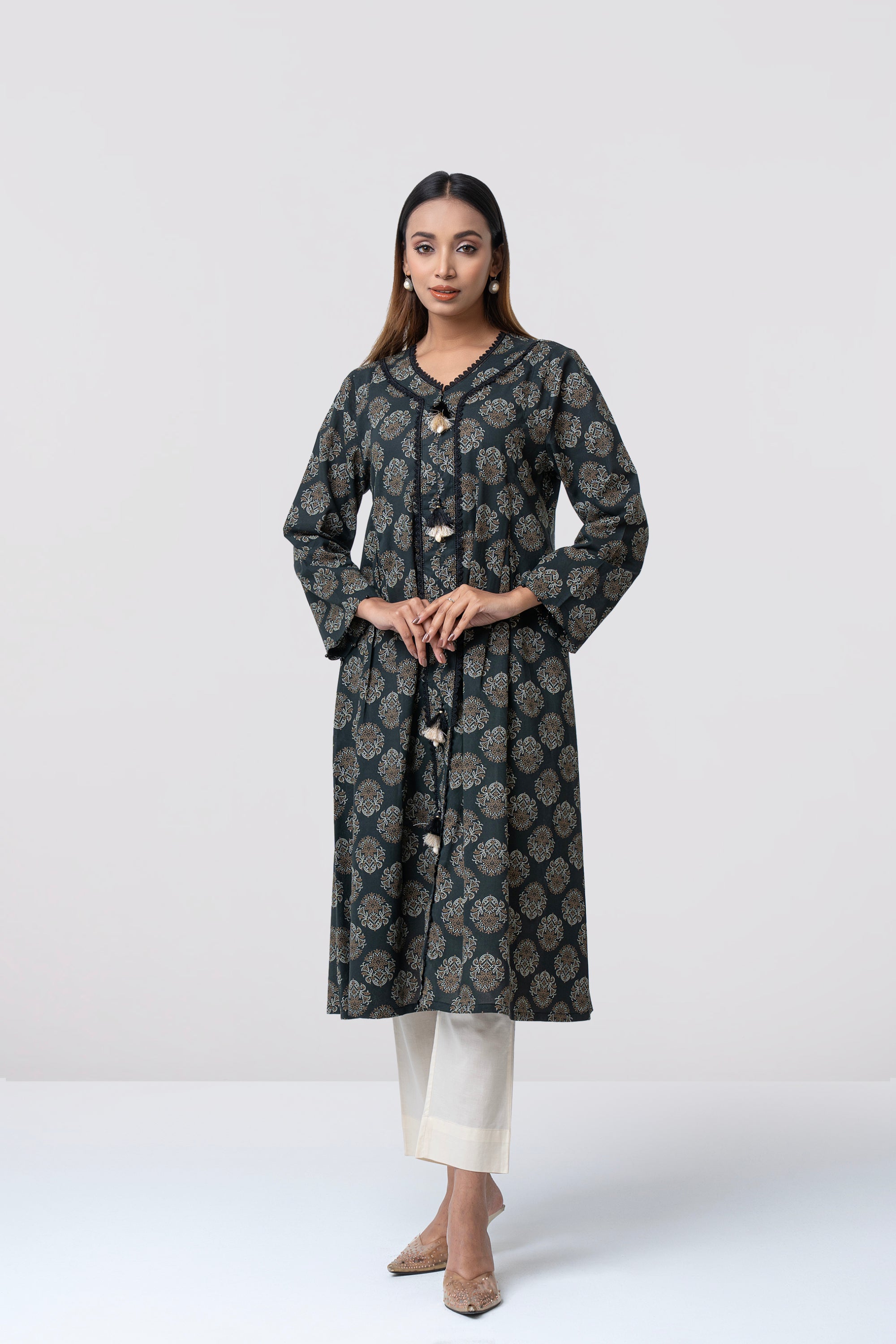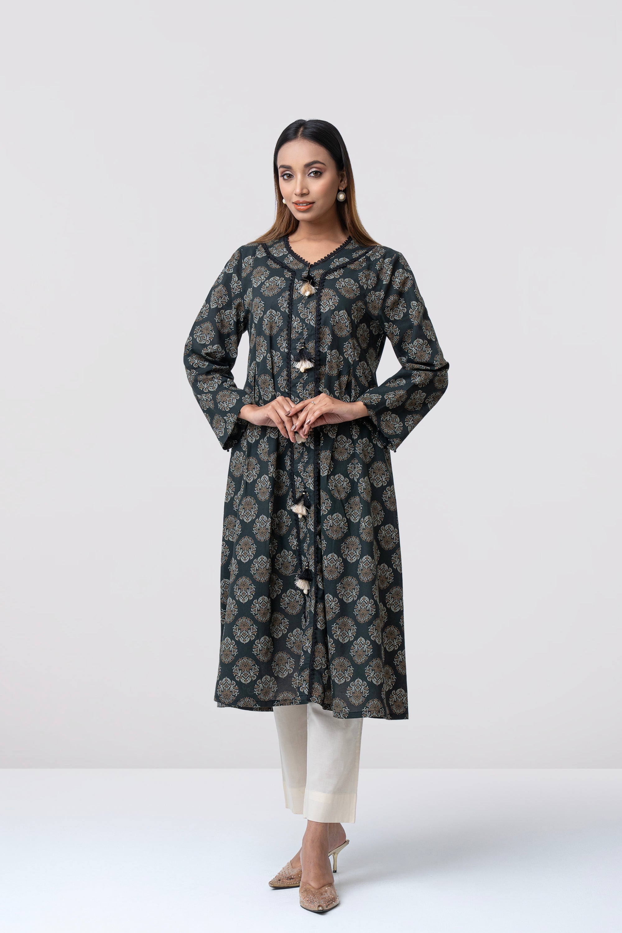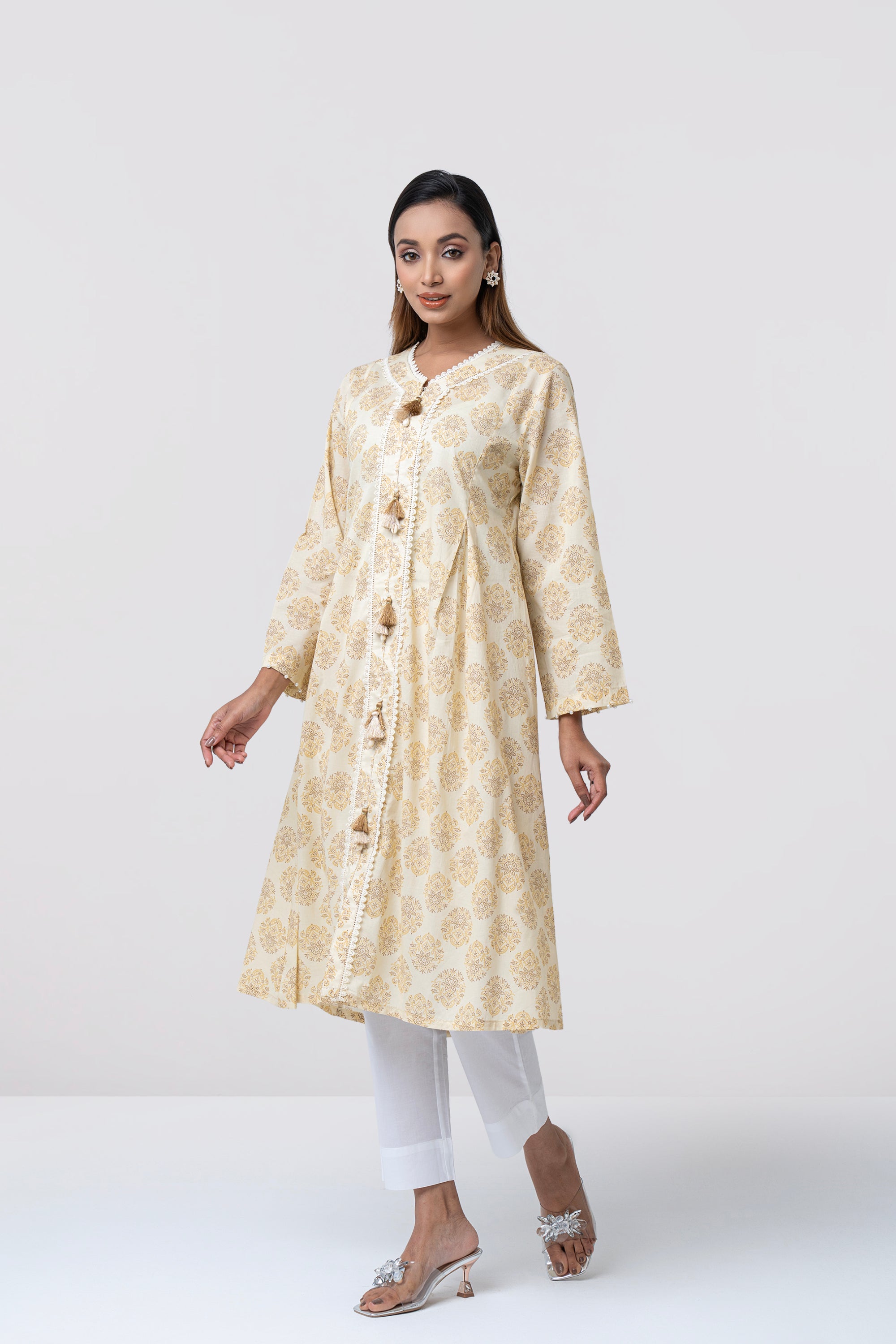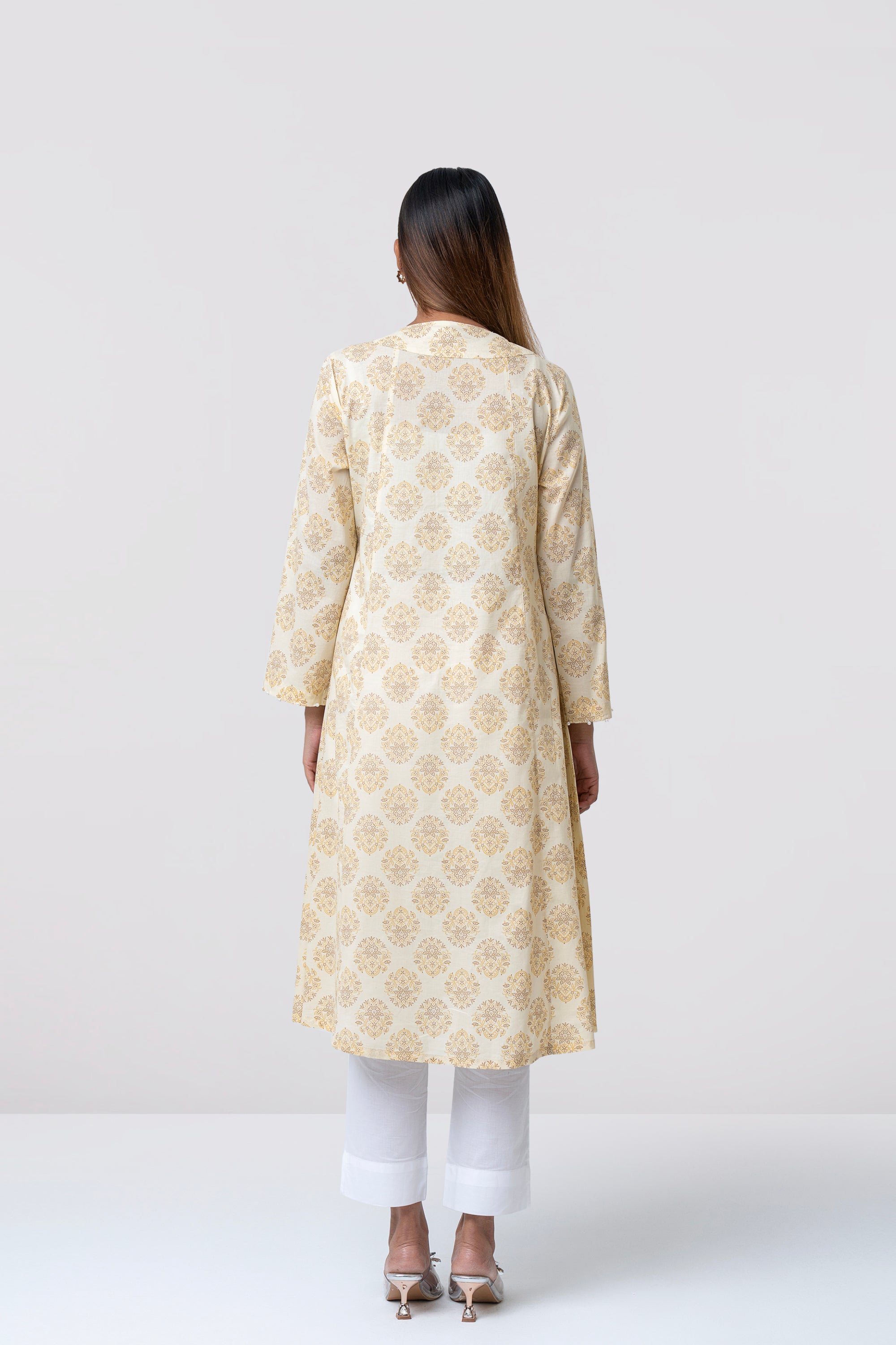 A smart-fit, long length single-piece kurta. Its straight silhouette makes it easy to wear and suitable for everyday use, office wear, or casual outings.