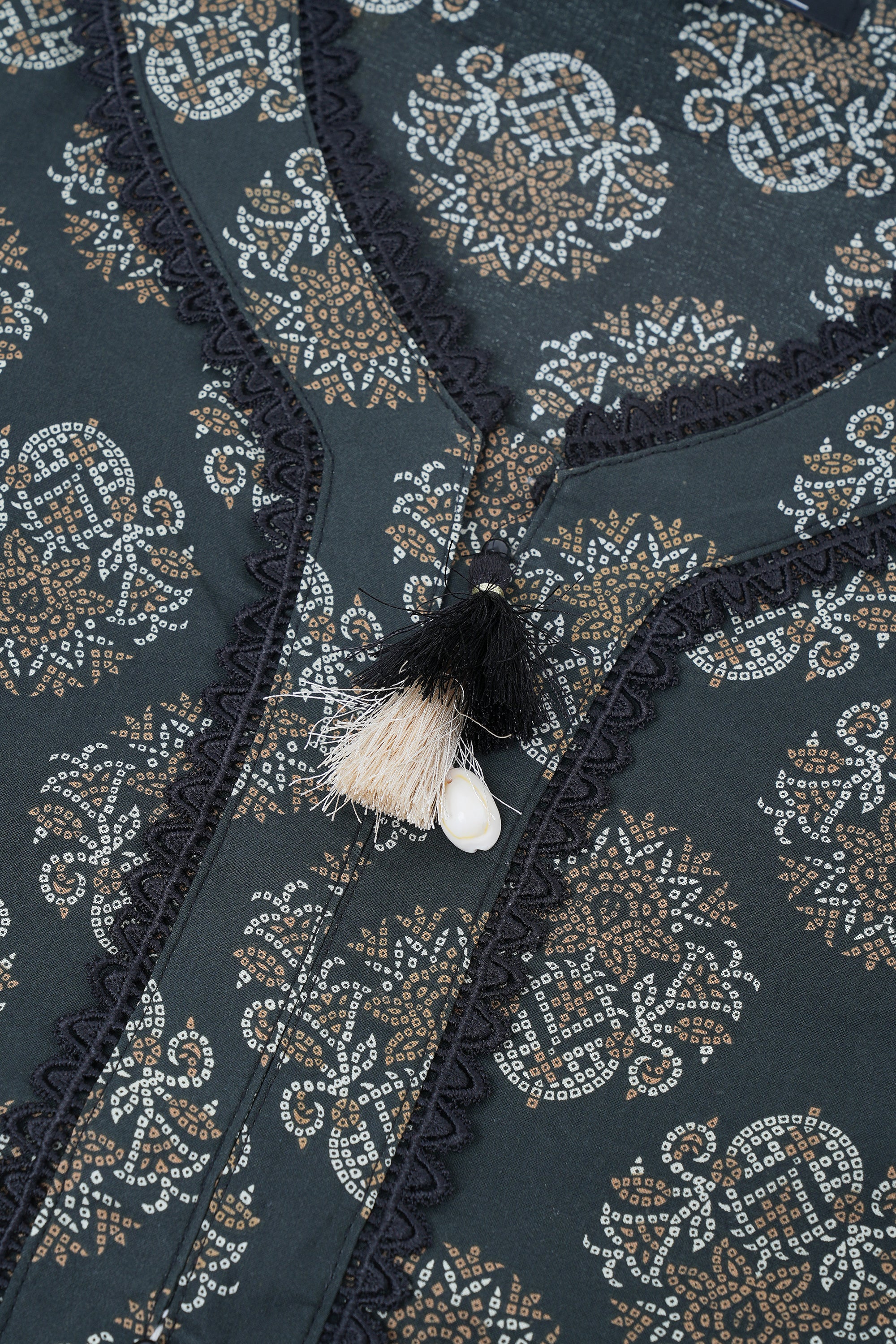• V neck with tassel embellishments & beads