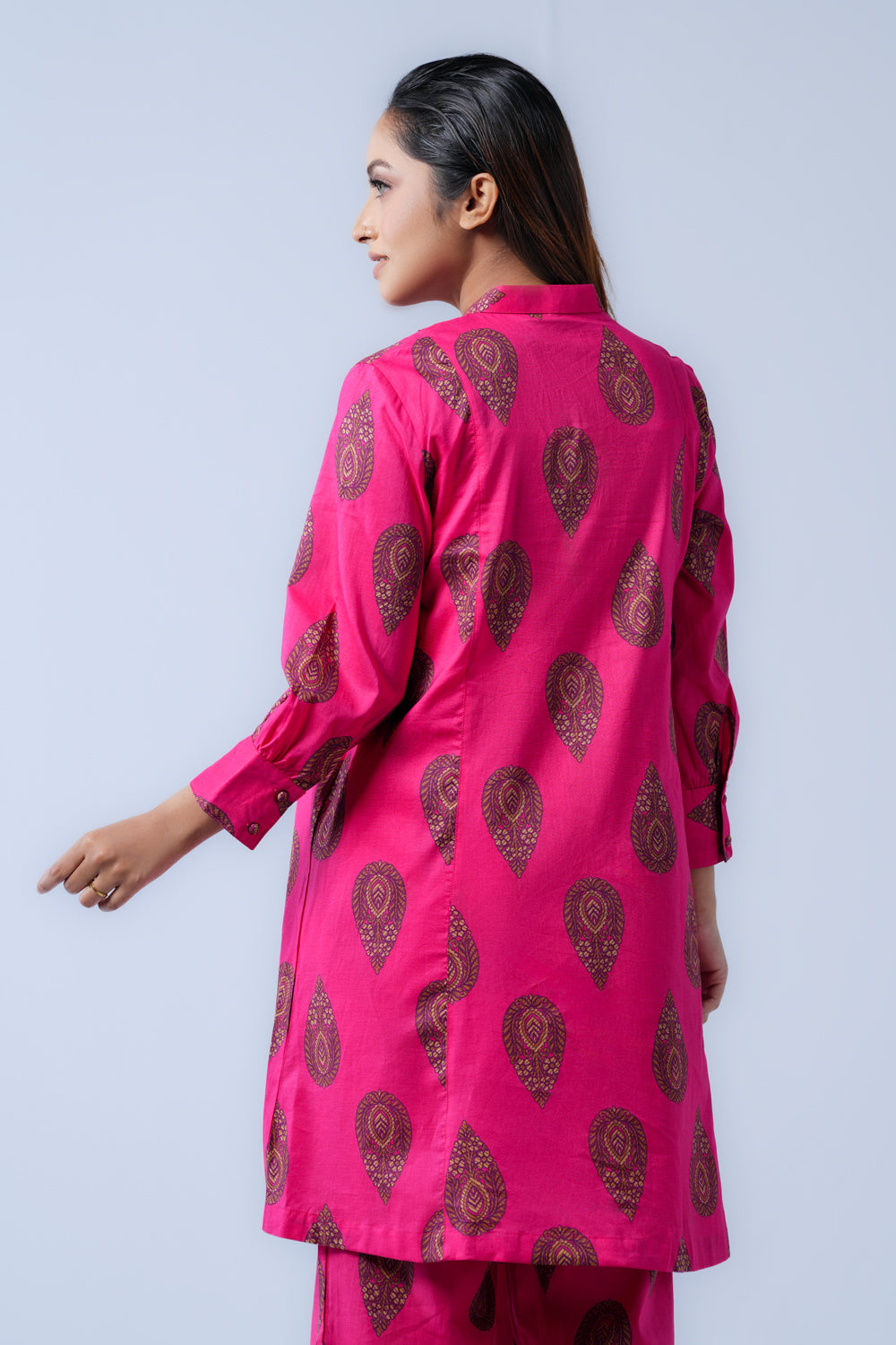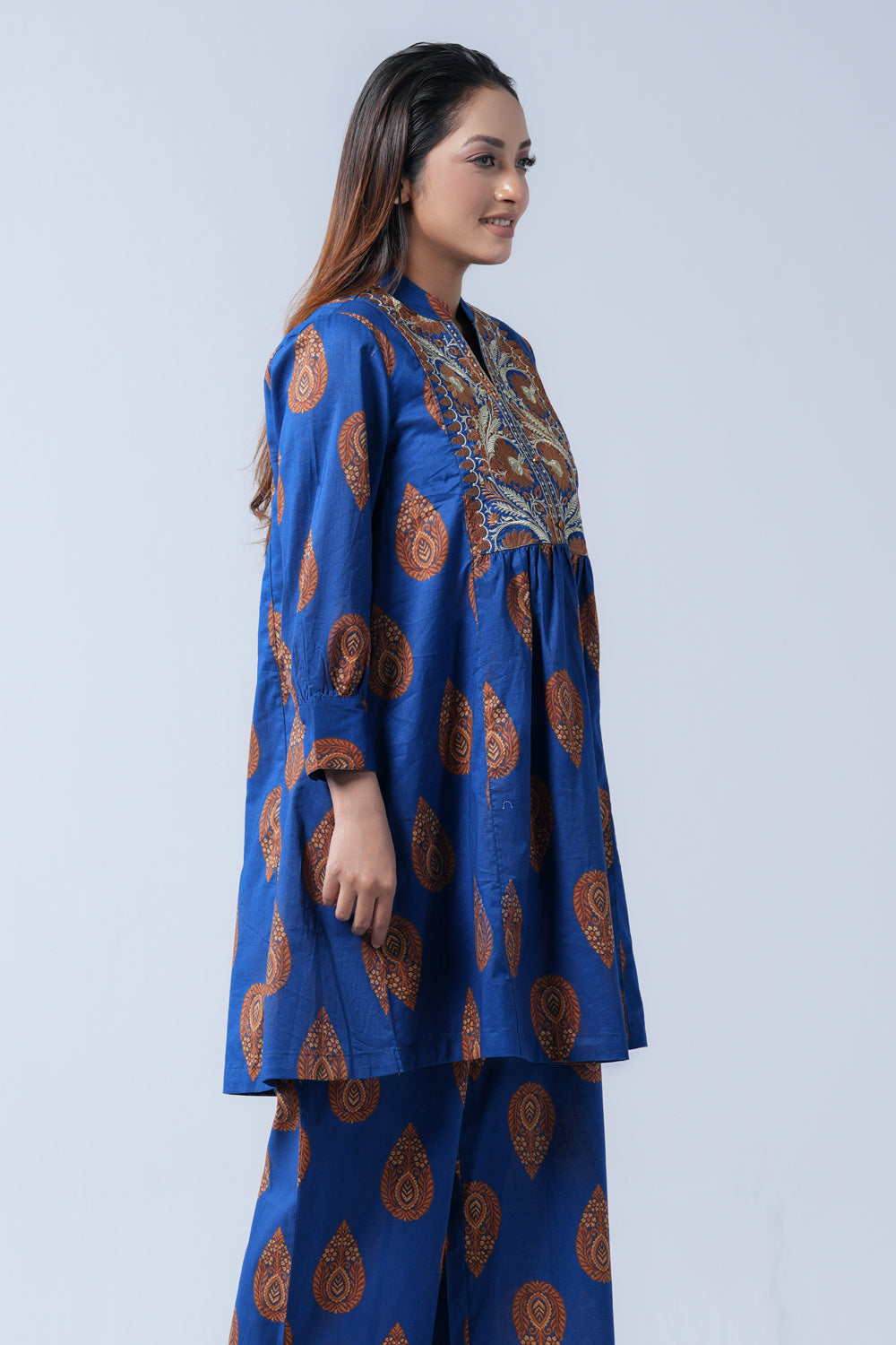 Short length single piece in smart fit kurti. Also has matching bottom, which can be paired with it.