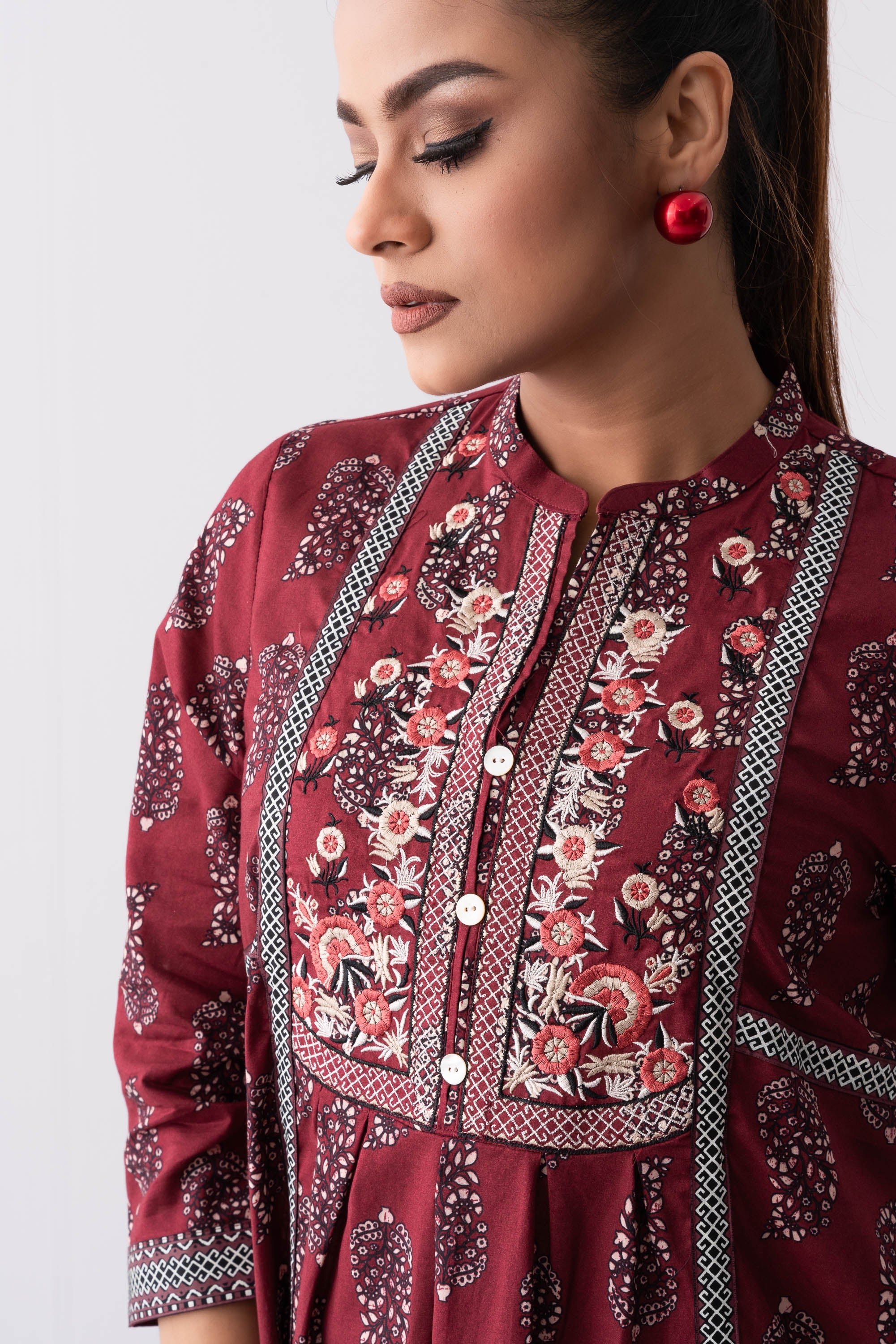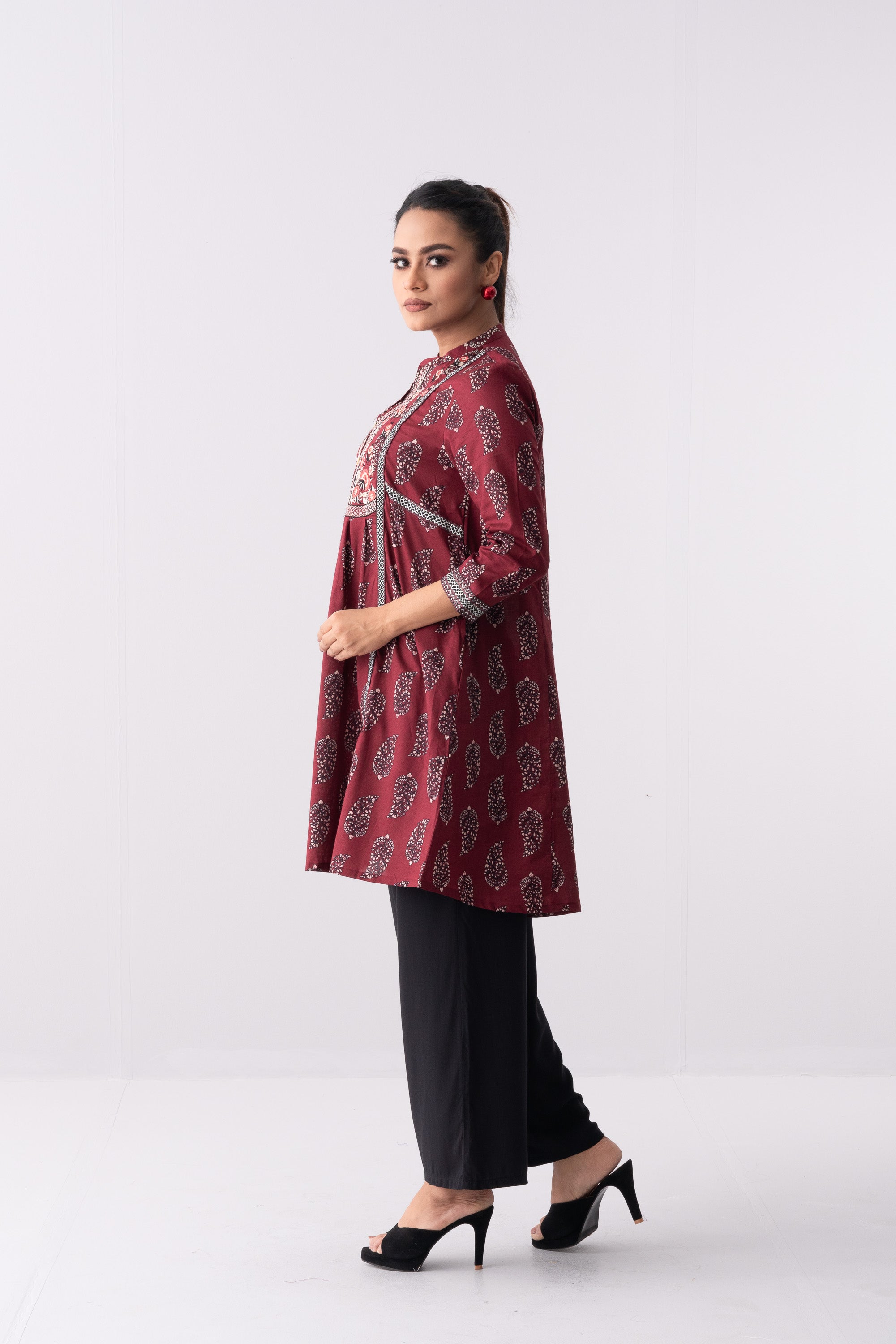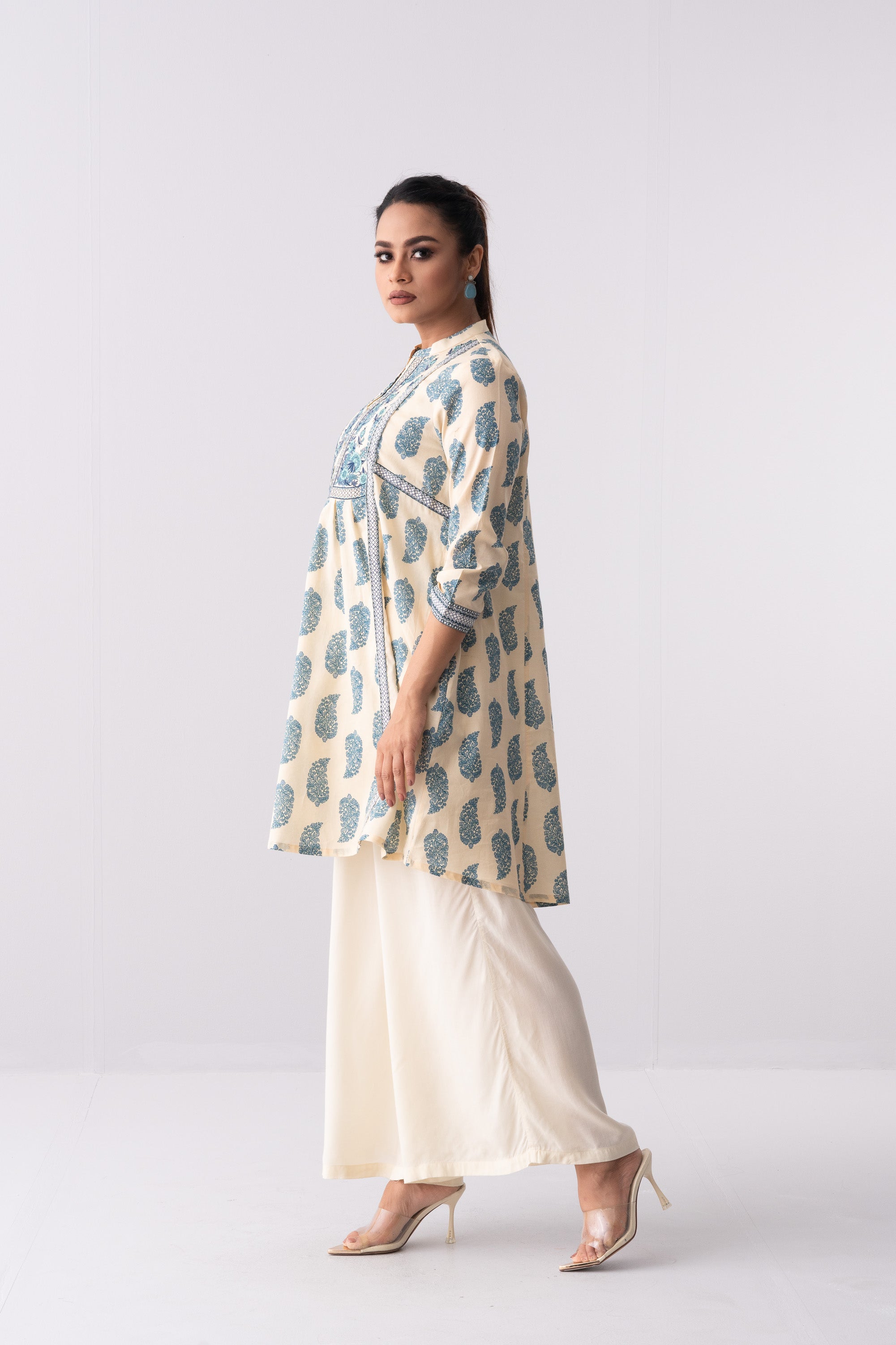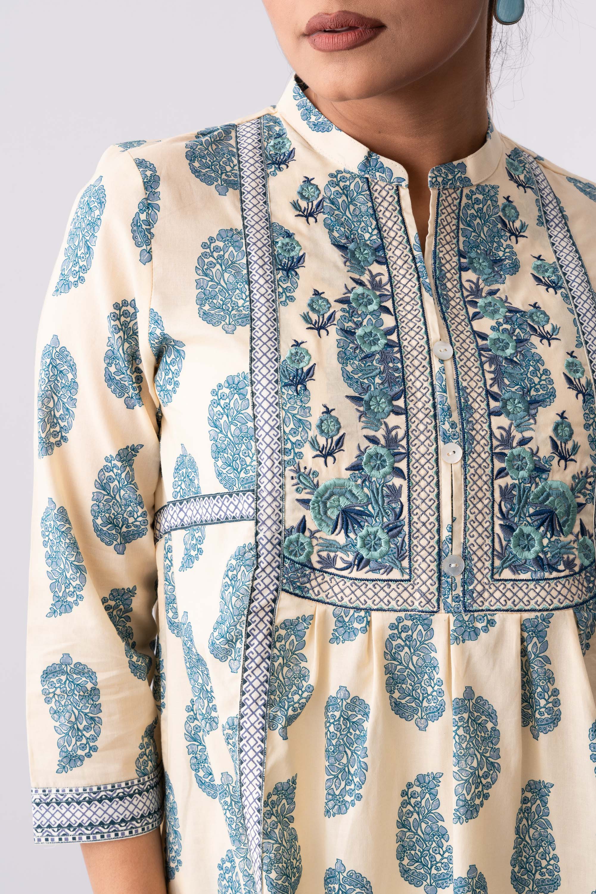 Short length single piece in smart fit kurti. Also has a matching bottom, which can be paired with it.