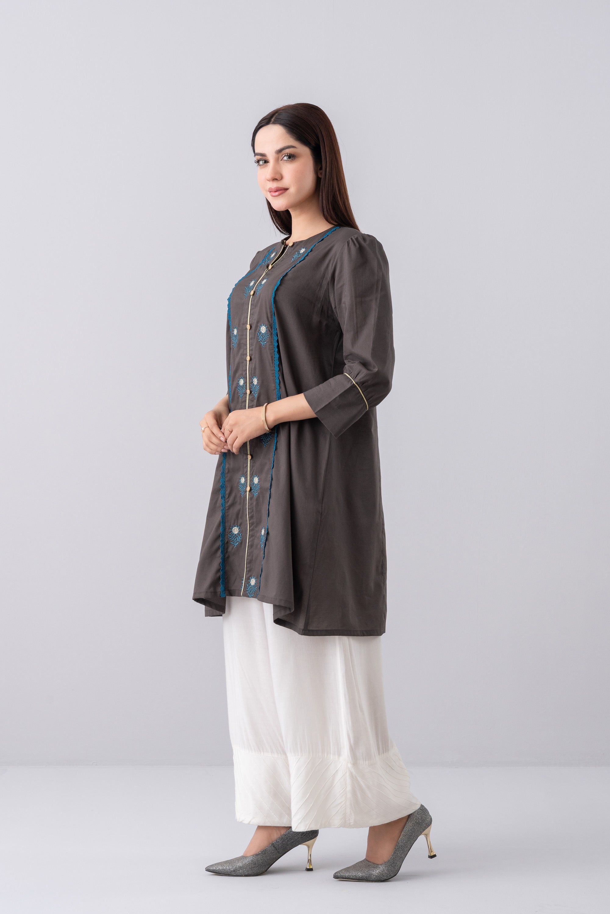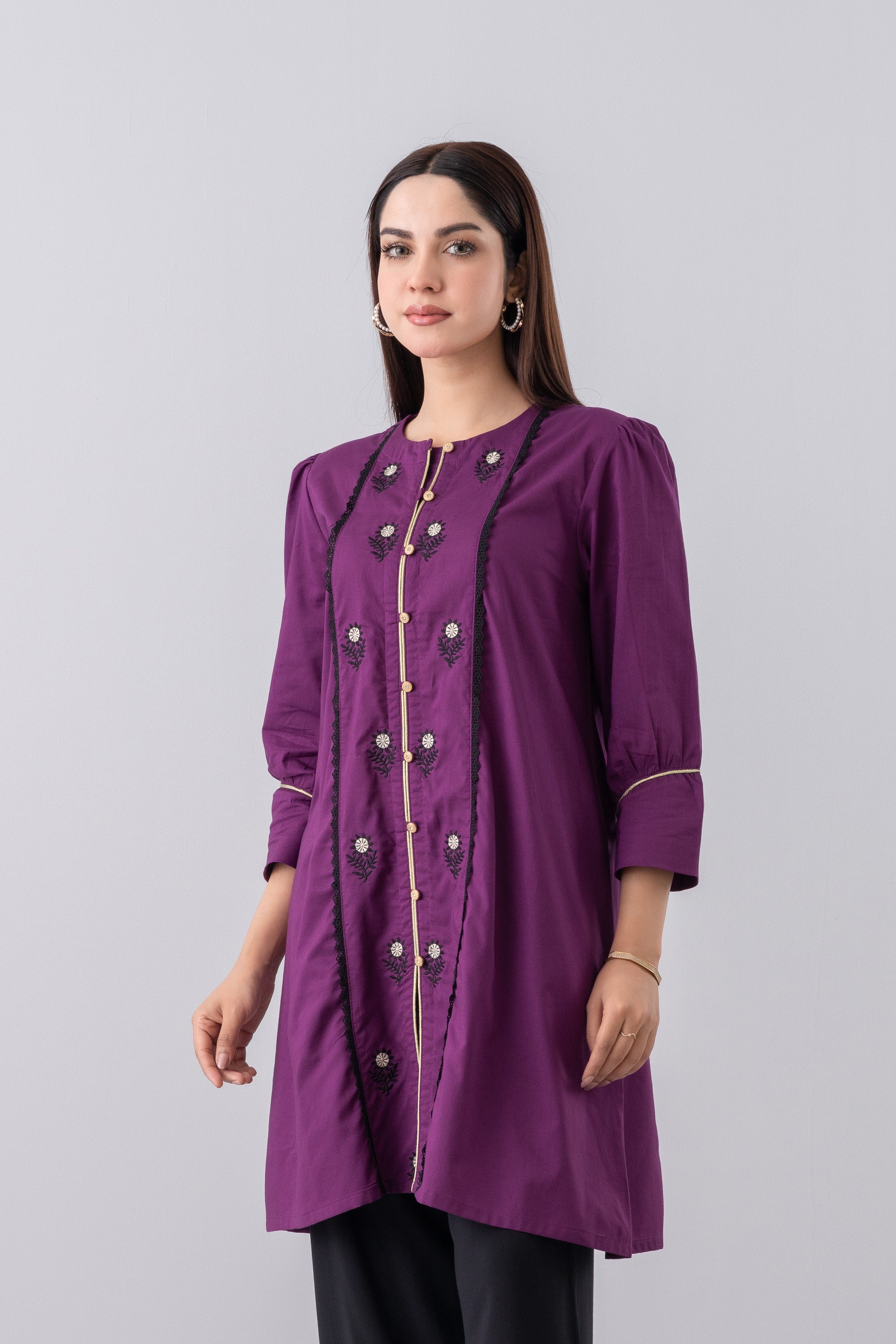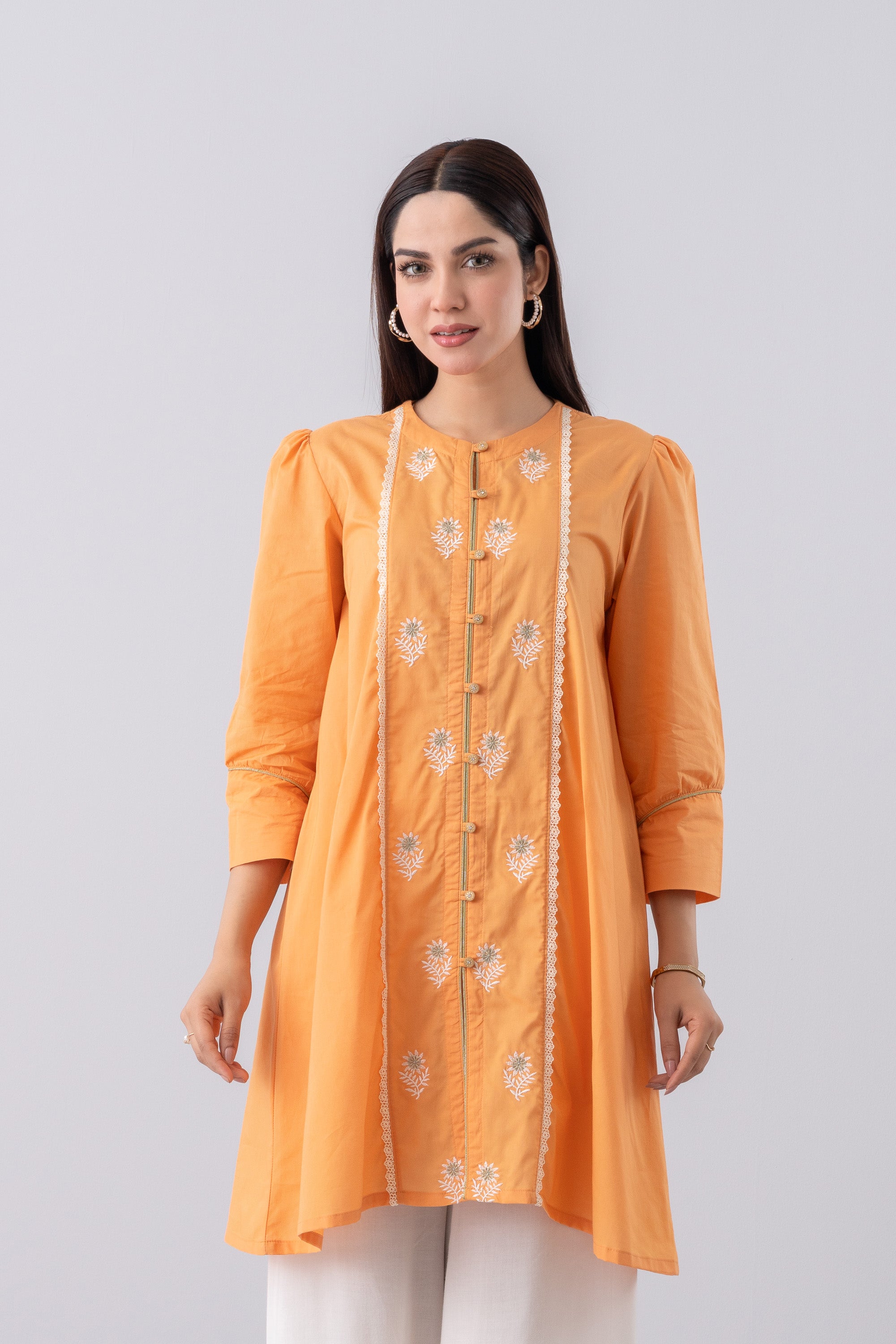 A smart-fit, Short length single-piece kurti. Its straight silhouette makes it easy to wear and suitable for everyday use, office wear, or casual outings.