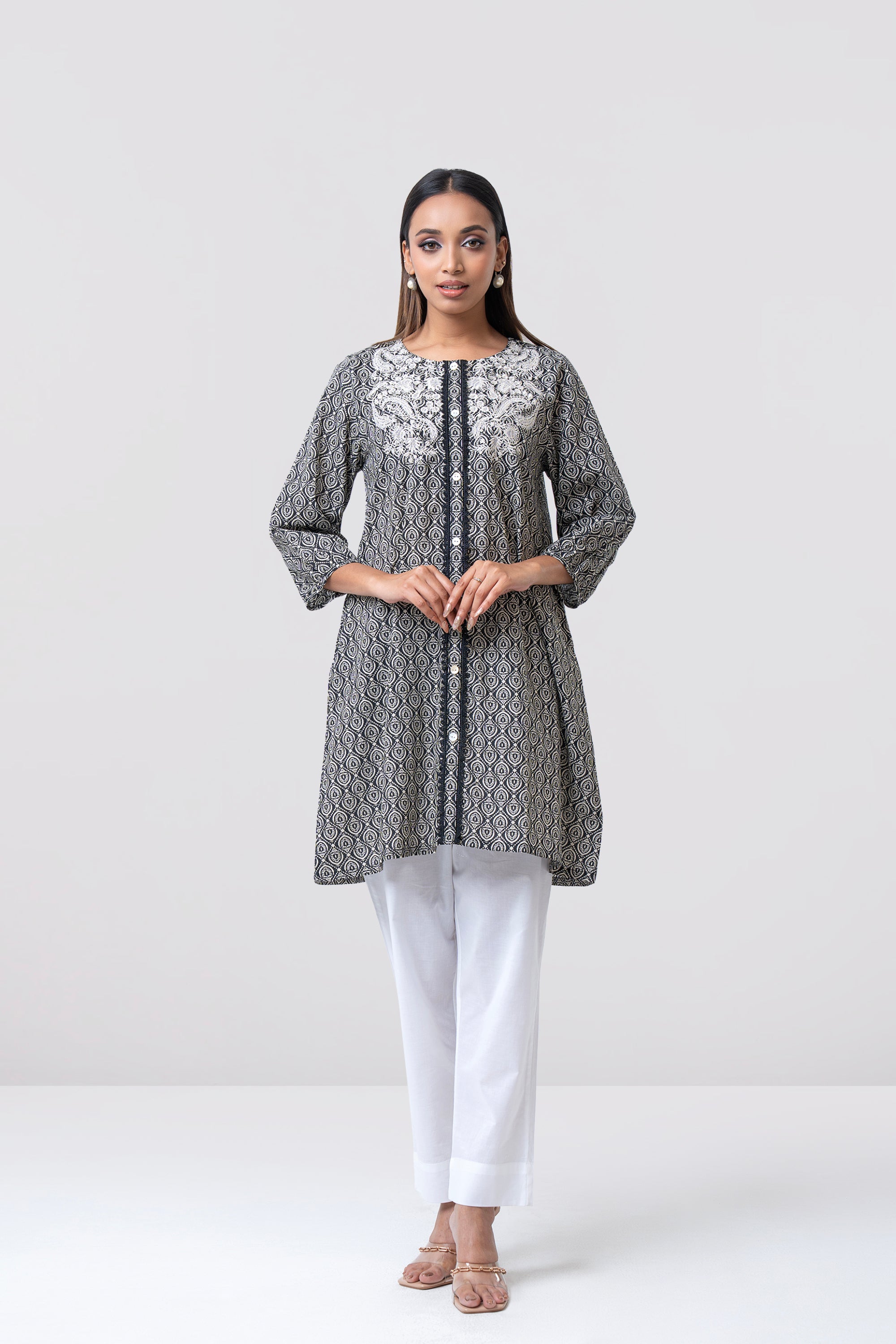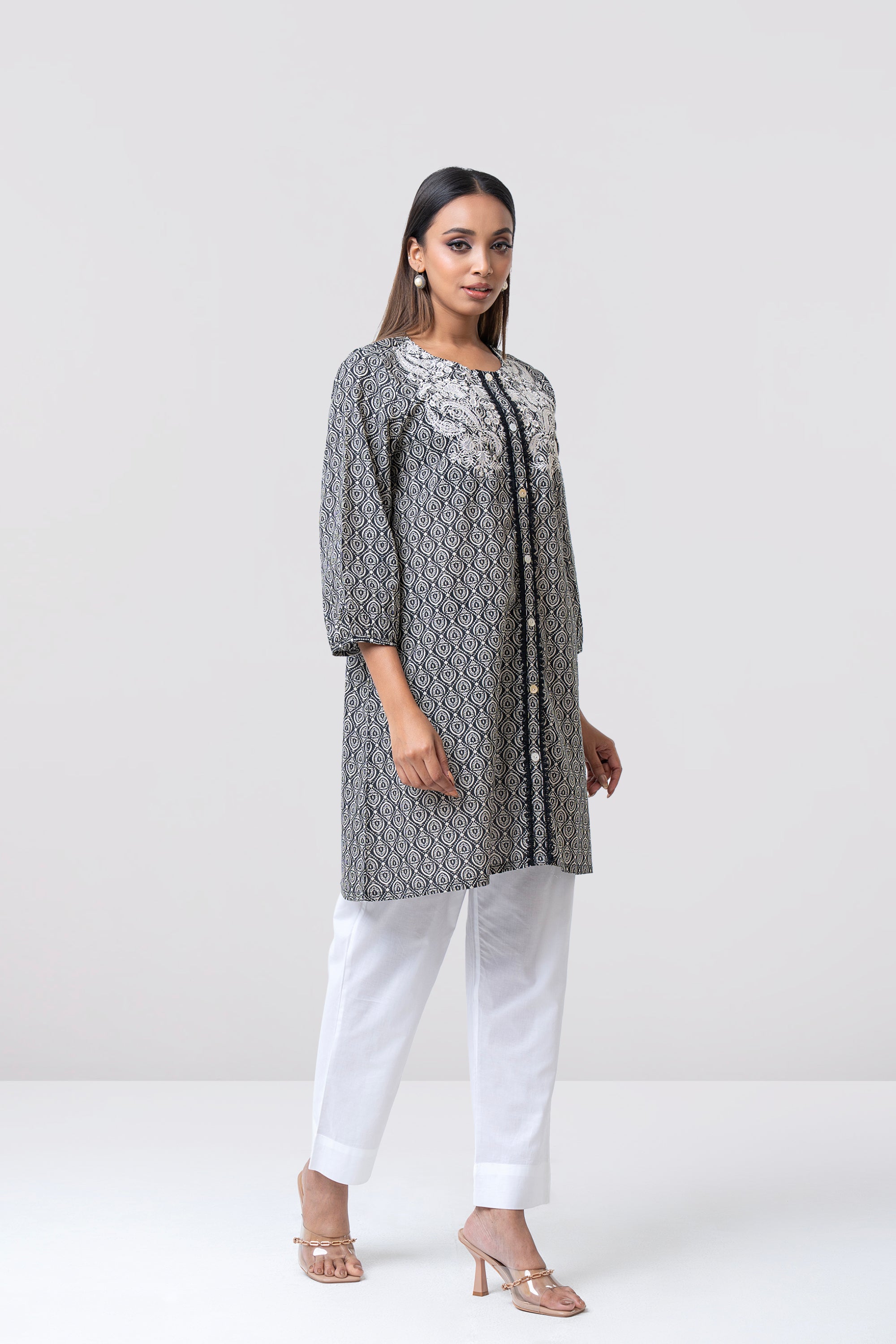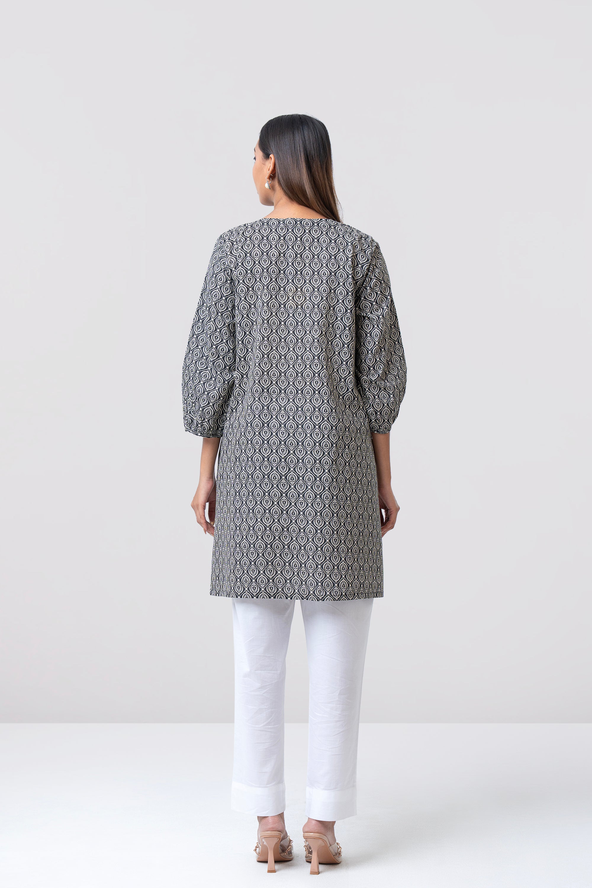 A smart-fit, short-length single-piece kurti. Its straight silhouette makes it easy to wear and suitable for everyday use, office wear, or casual outings.