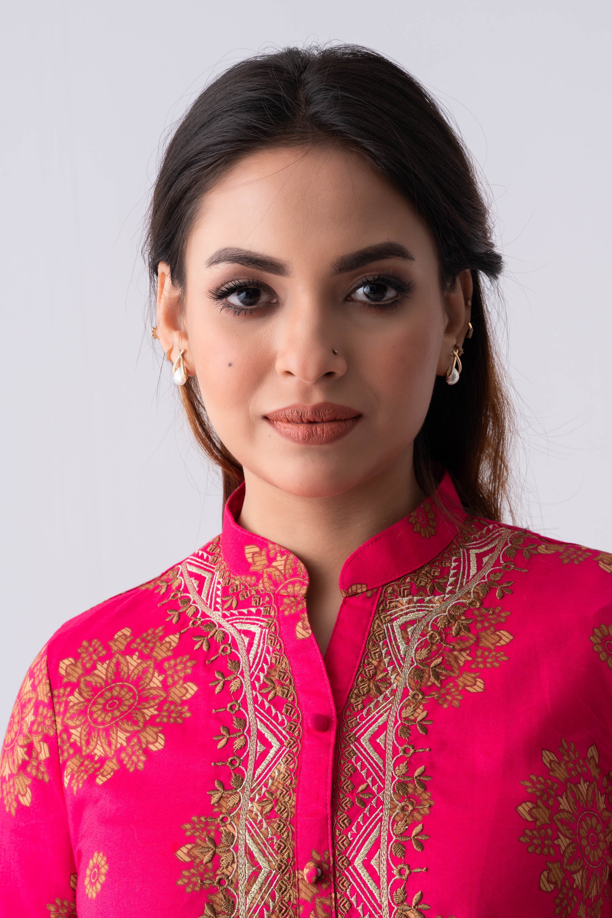 Single piece in smart fit kurti. Also has matching bottom, which can be paired with it.