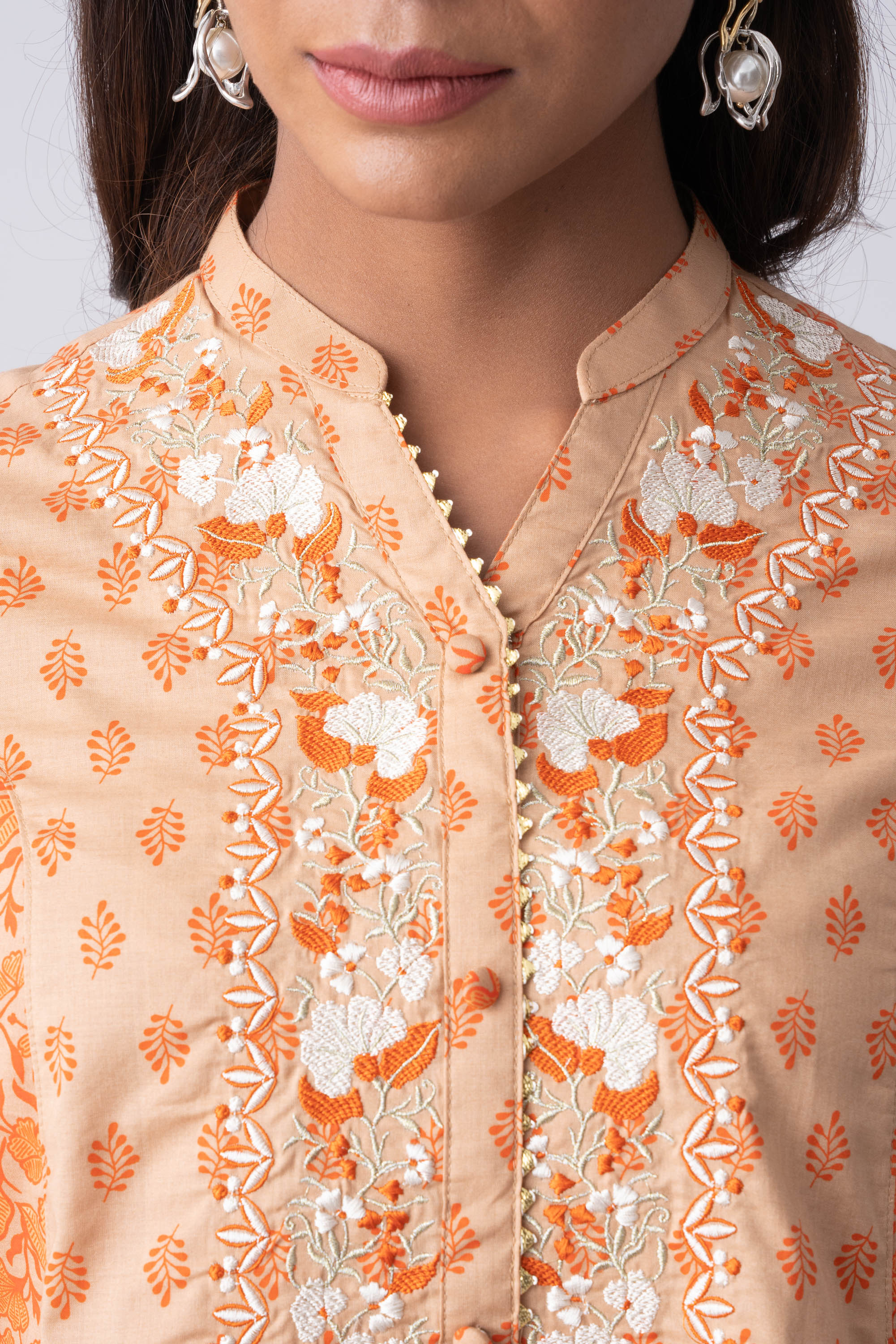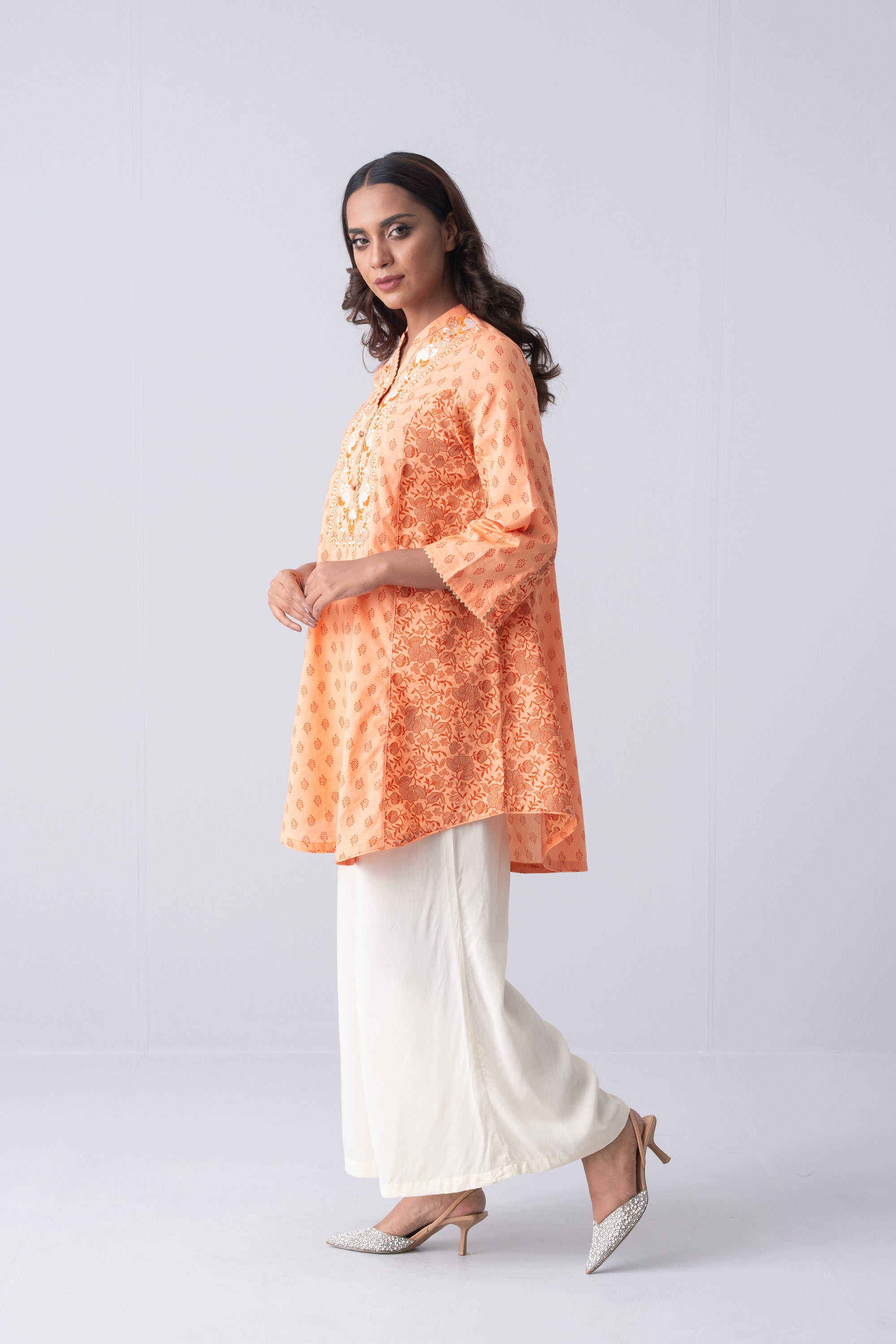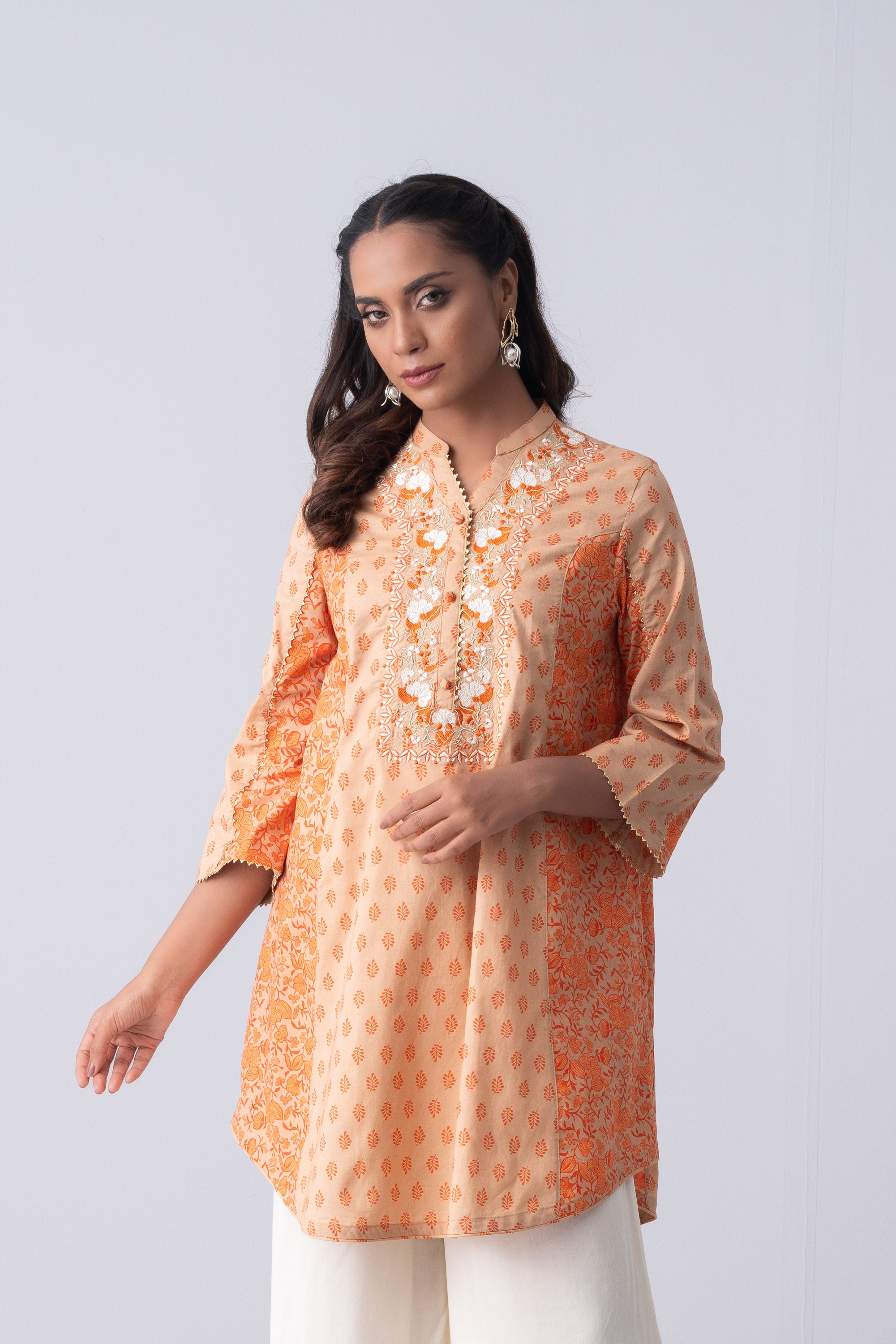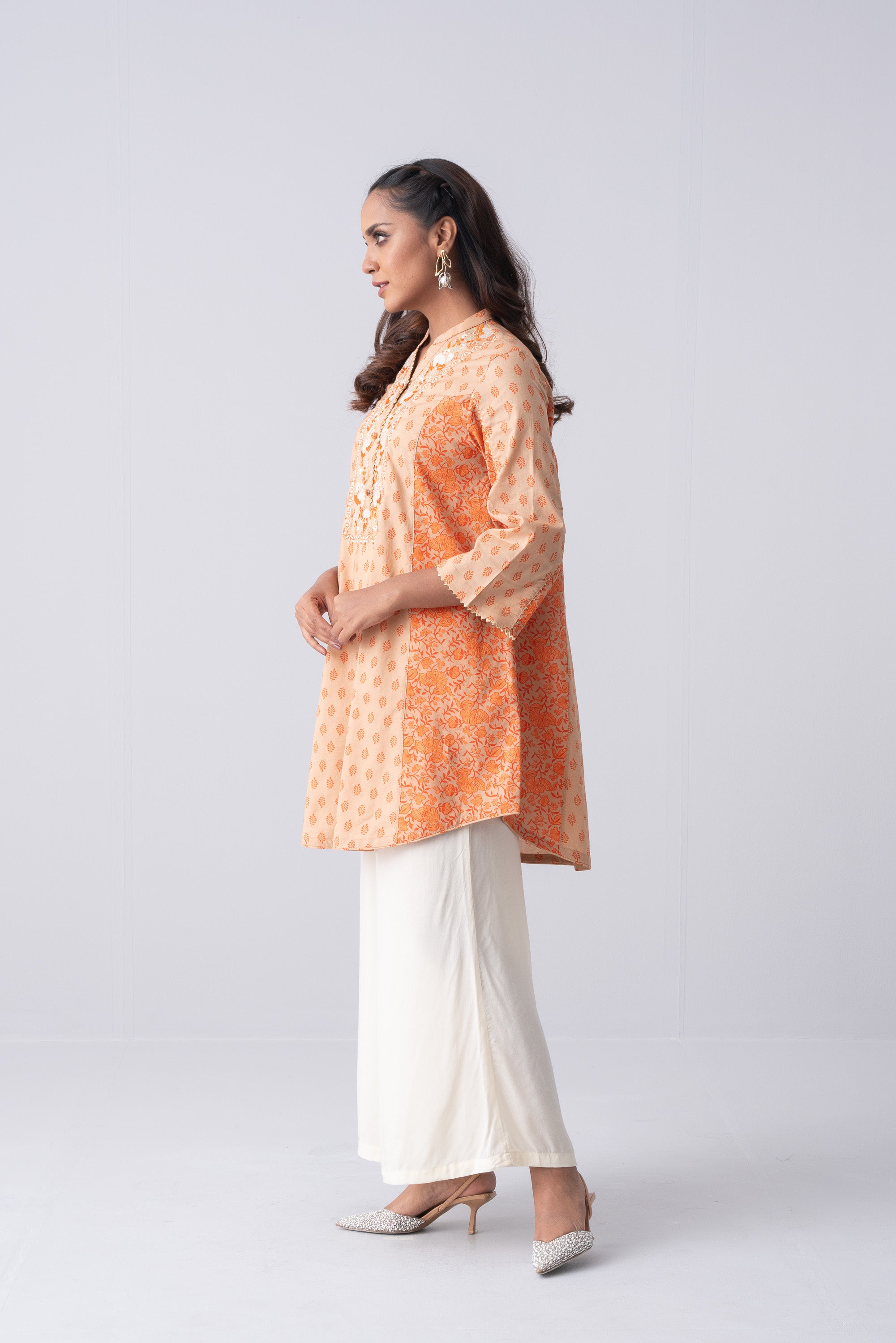 Short length single piece in smart fit kurti. Also has matching bottom, which can be paired with it.