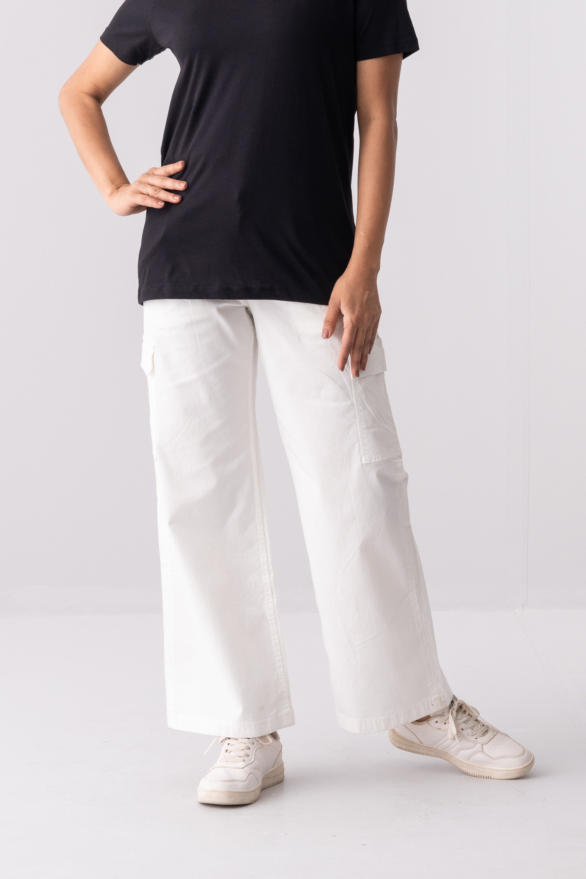 Wide-Leg Twill Pants combine casual elegance with comfort. Made from peach-finish stretch twill fabric, they offer a soft feel and easy movement. The wide-leg design adds a relaxed touch, while patch pockets at the thigh enhance functionality. Perfect for effortless, everyday style.