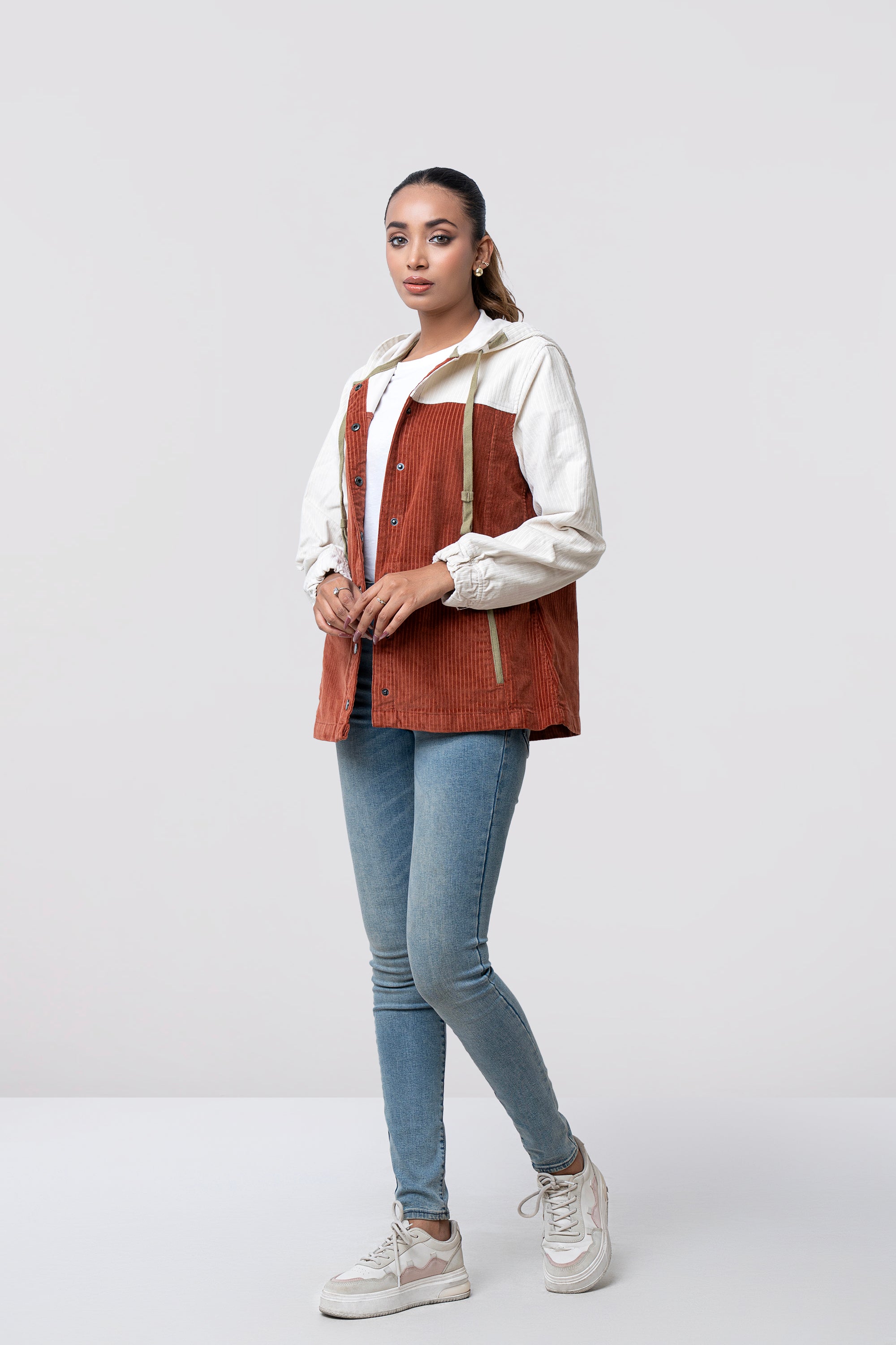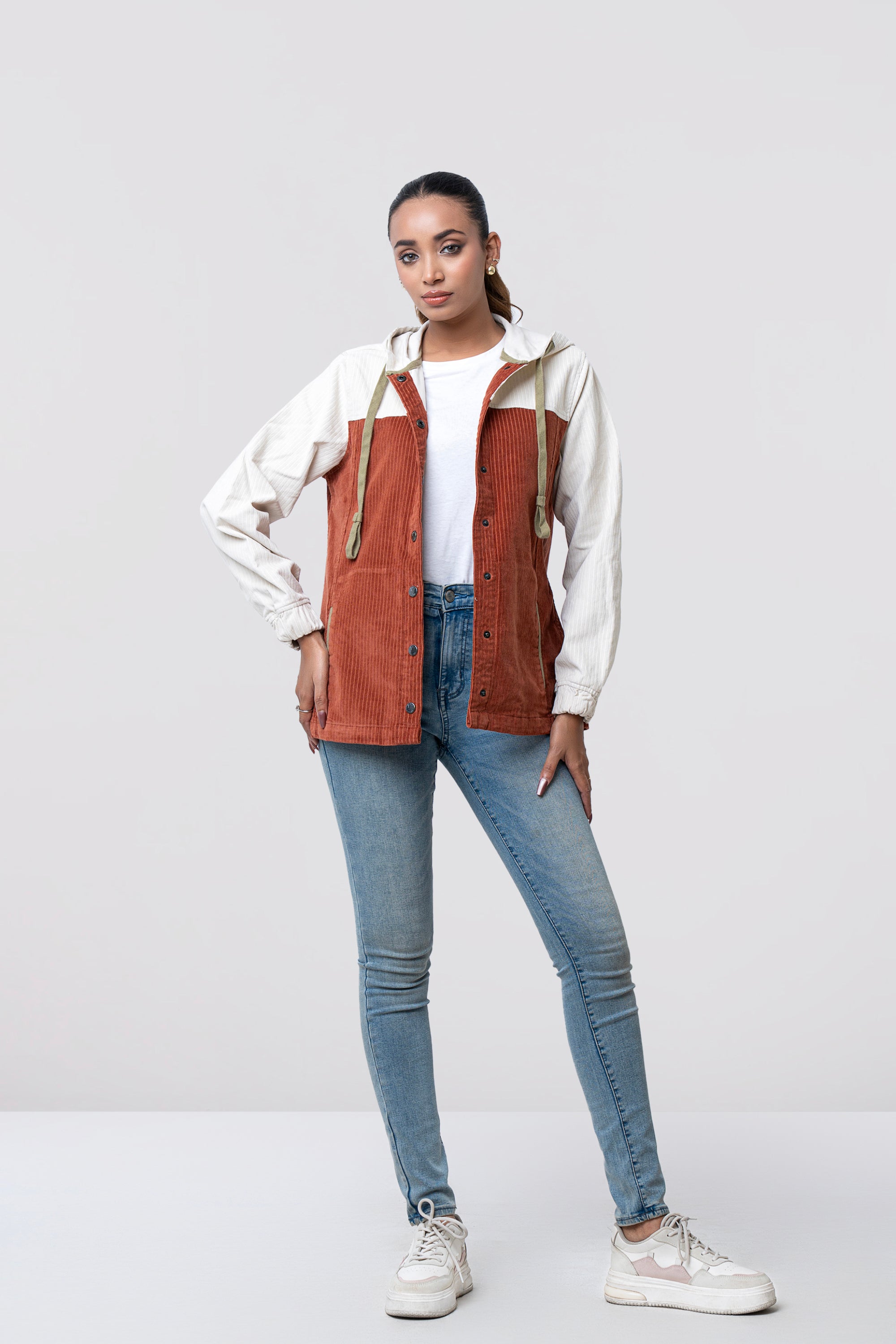 Elevate casual look with this regular-fit women’s hoodie featuring a striking snow white and cinnamon color contrast. Designed for both comfort and style, it showcases a front snap-button closure that adds a modern touch to its classic silhouette. The contrast drawstring at the hood enhances the fashion vibe, while the welt pockets offer functionality with a sleek finish. Perfect for layering or lounging, this hoodie blends winter day ease with effortless chic.