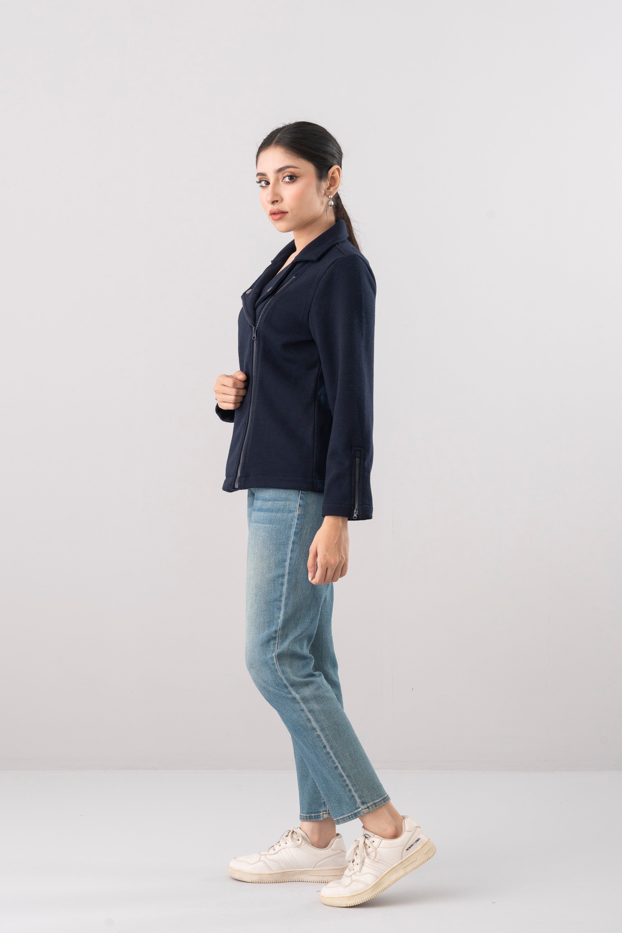 Women’s double-breasted jacket crafted from a super soft, yarn-dyed twill fabric with a brushed surface for a cozy hand feel. Made from a premium cotton-poly blend, it features snap button details and a Vislon zipper fastening for a modern, functional finish.