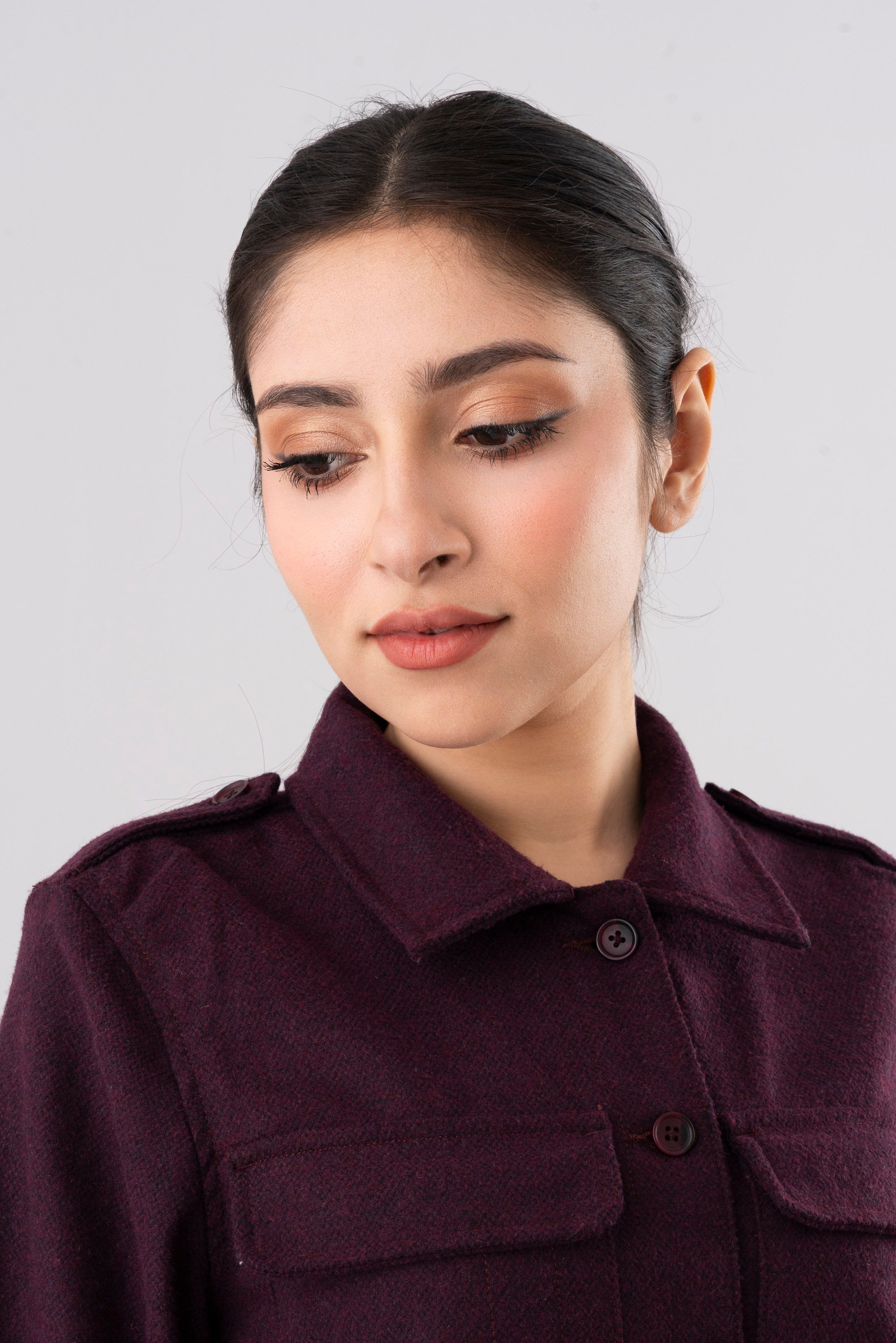 Women’s regular fit woven jacket is designed with a perfect balance of utility and style. It features double patch pockets at the chest for a functional touch and a shirt collar that adds classic appeal. Buttoned shoulder epaulettes enhance its structured look, while the waist drawcord allows for a refined and adjustable fit, making it both stylish and practical.