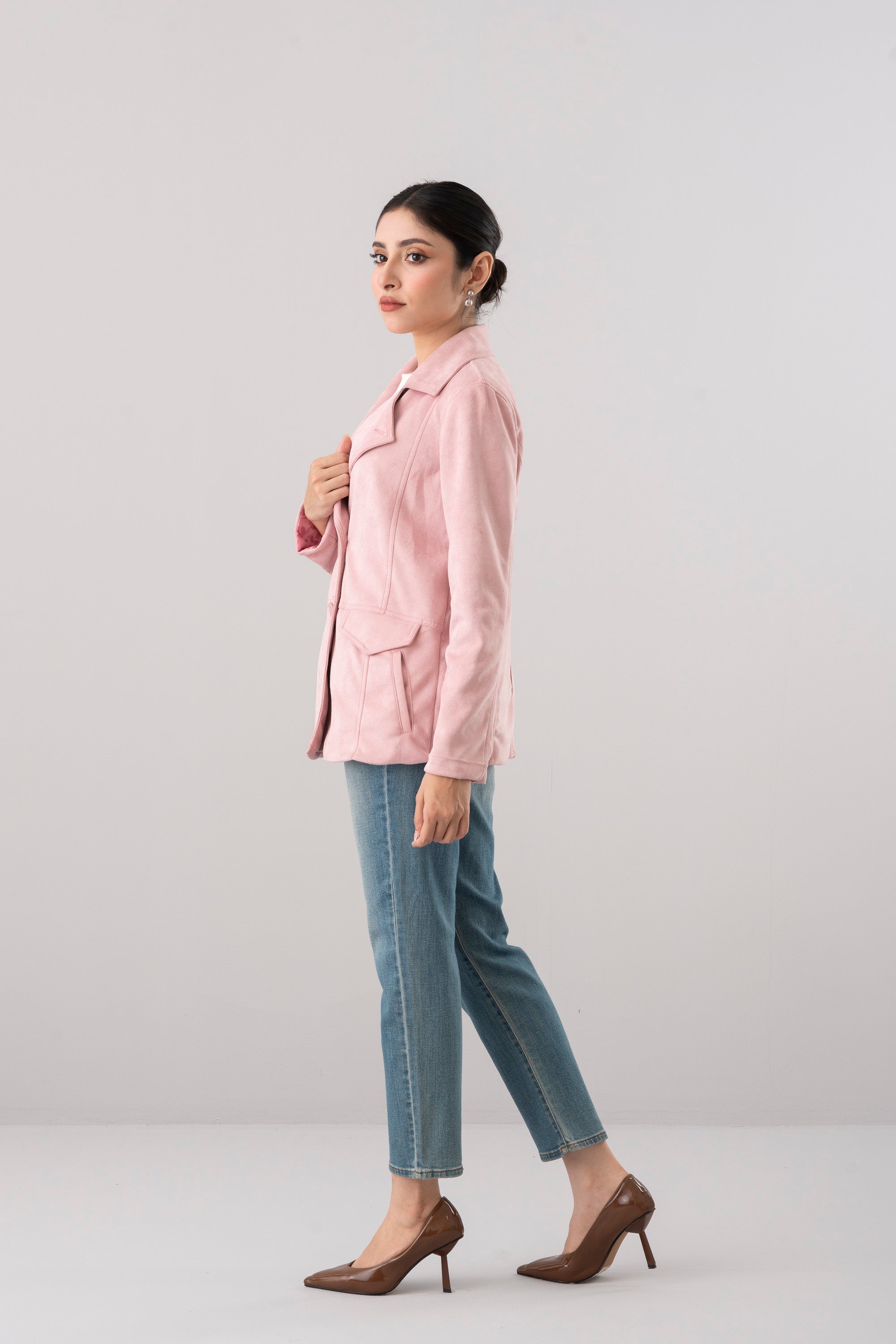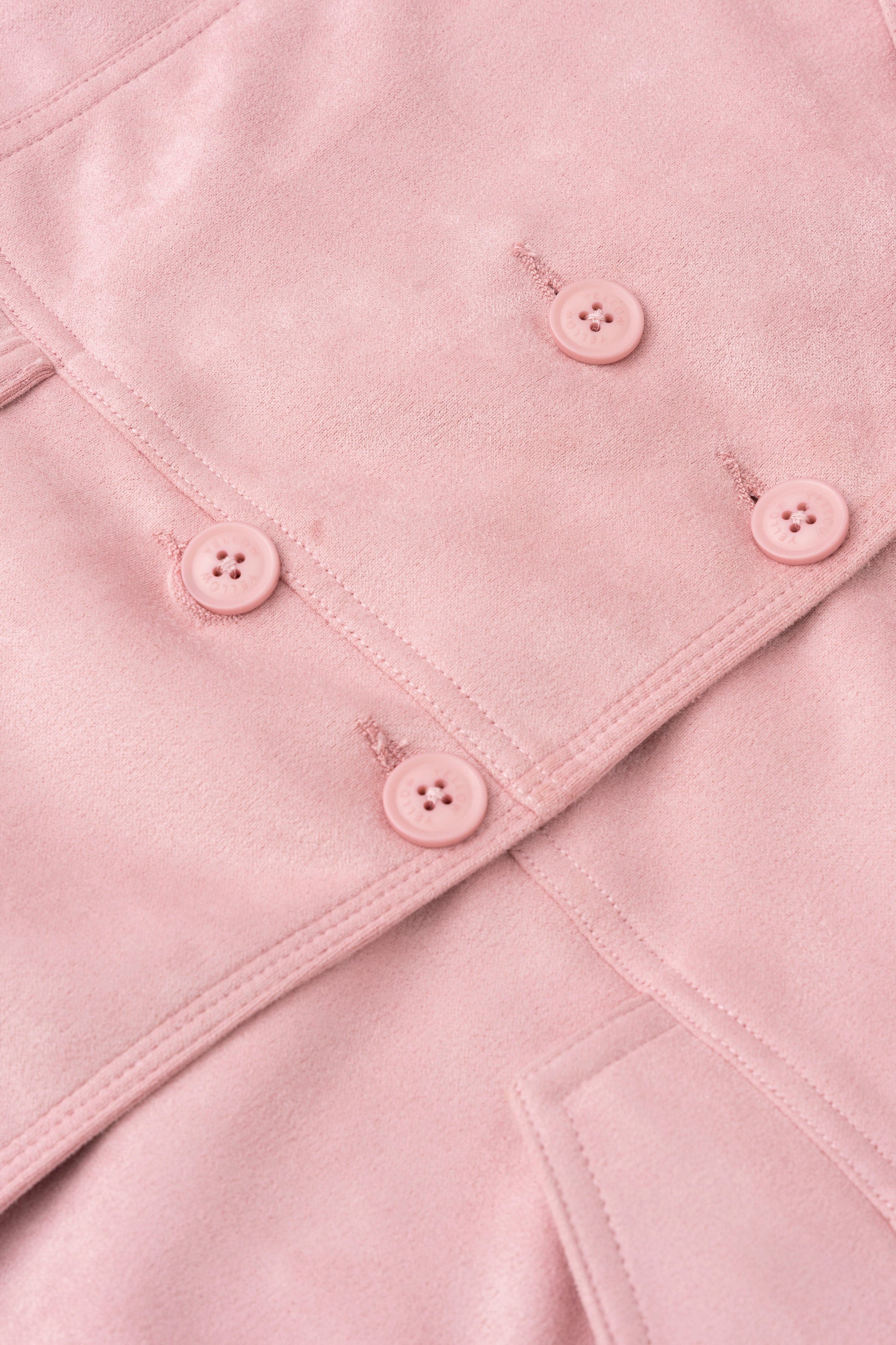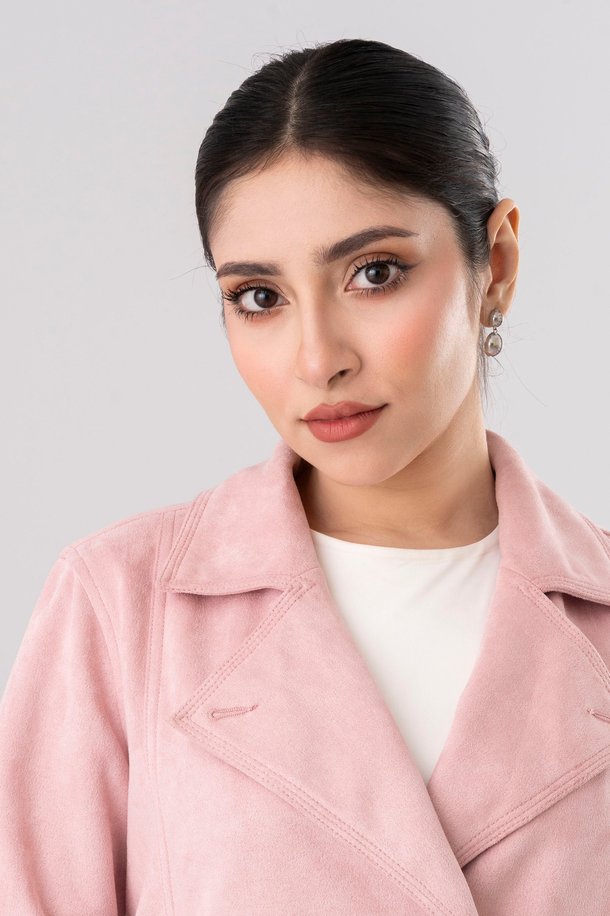 Double-Breasted Suede Jacket Crafted in soft, super comfortable suede, this regular-fit jacket features a classic double-breasted design with chalk button front fastening. Flap side pockets add functionality, while cut-and-sew detailing enhances the tailored look, making it a perfect blend of style and comfort.