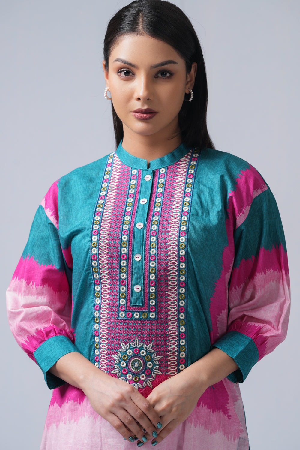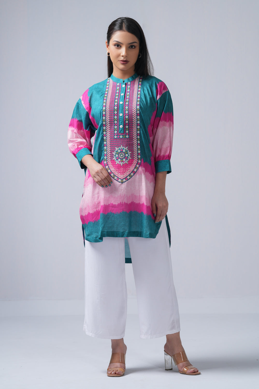 Elevate your elegance with our stunning ready-to-wear 1 Piece Lawn Kameez, adorned with embroidery, shell buttons, a high-low hem, boxy sleeves, and contrast cuffs. Designed for both comfort and sophistication, this piece is perfect for special occasions or adding a touch of luxury to your everyday wardrobe.