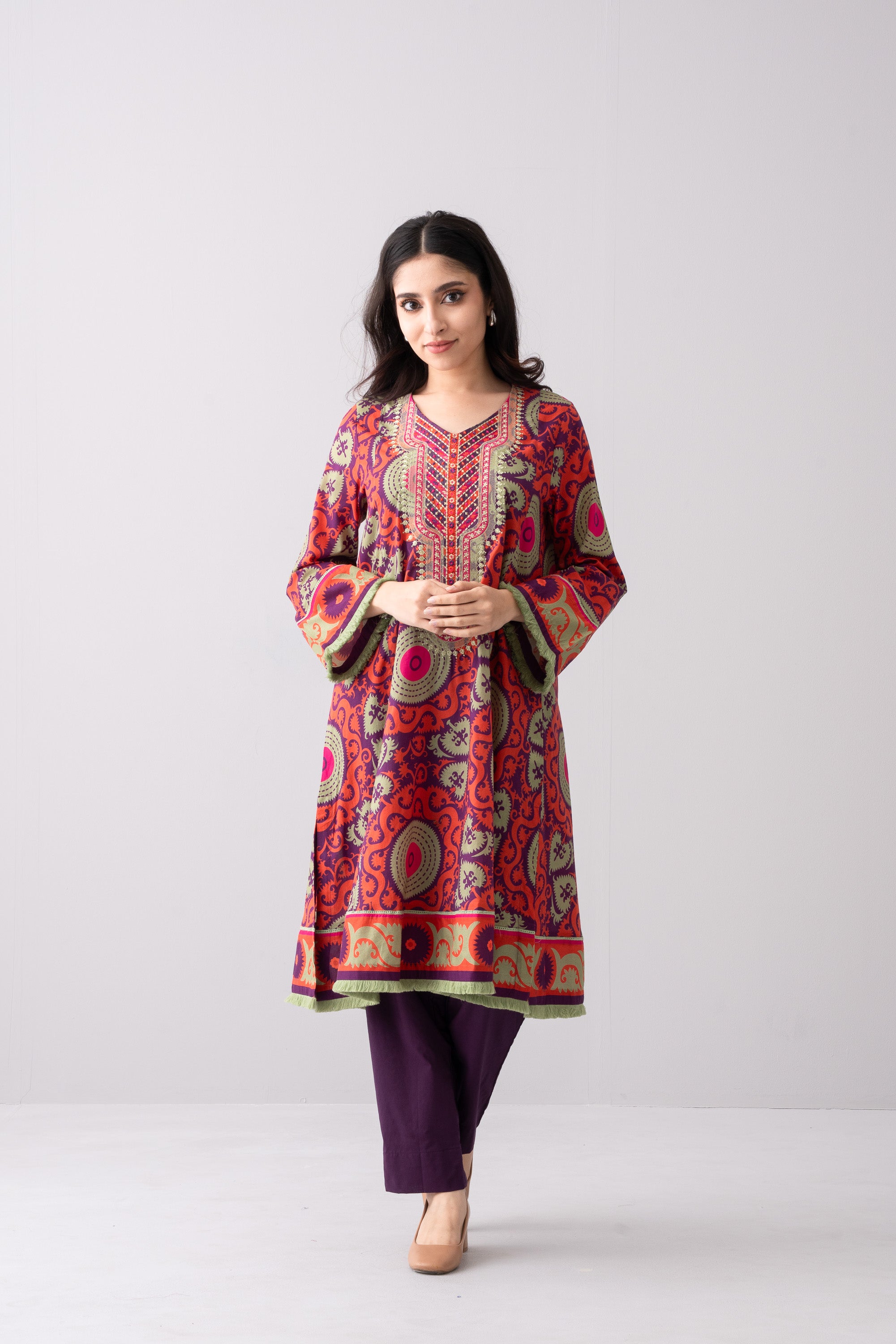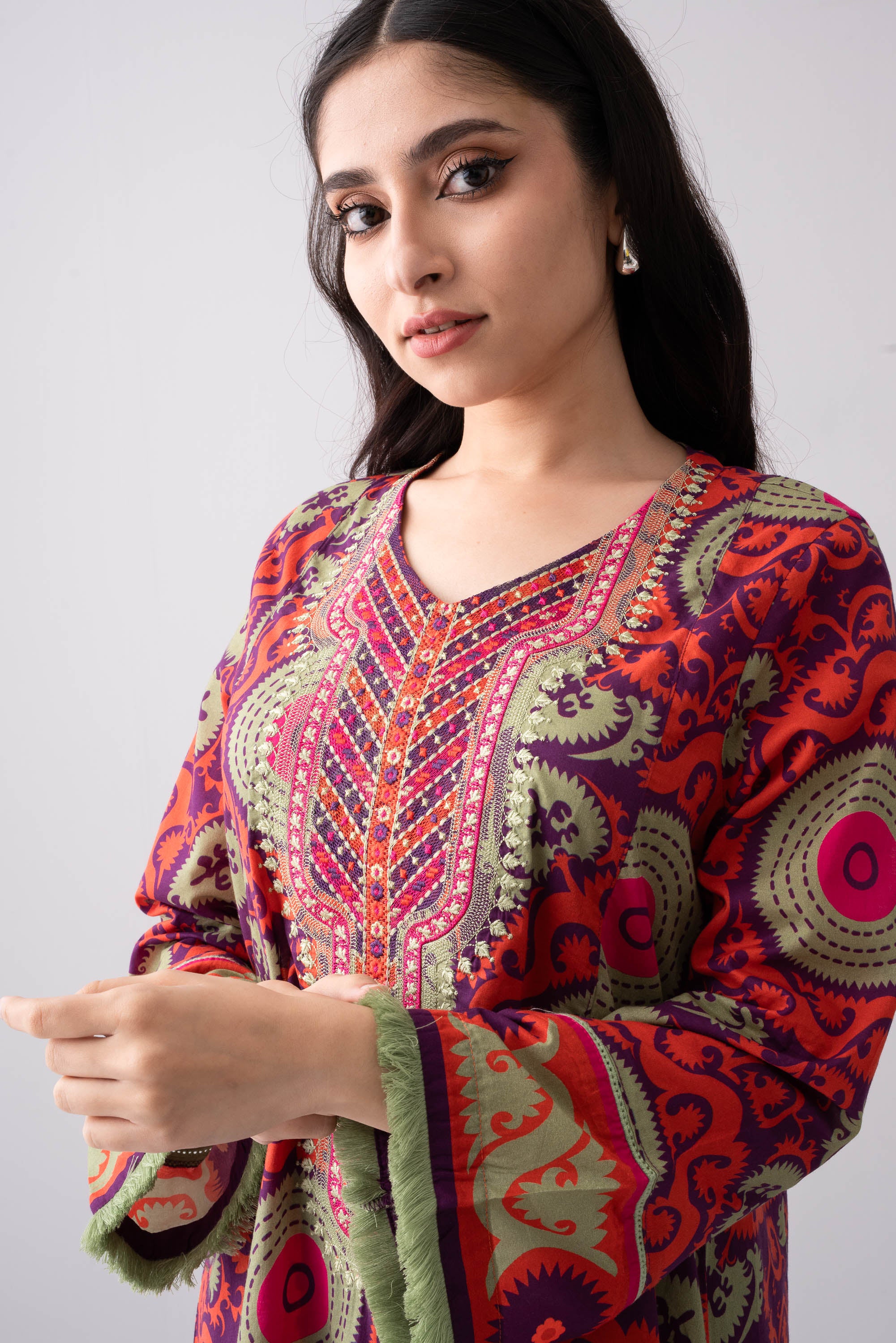 Elevate your elegance with our stunning ready-to-wear 1 Piece Lawn Kameez, featuring a flattering A-line fit, V-neckline, intricate embroidery, and decorative lace detailing for a graceful, refined look combining comfort and elegance, perfect for special occasions or adds luxury to your everyday wardrobe.