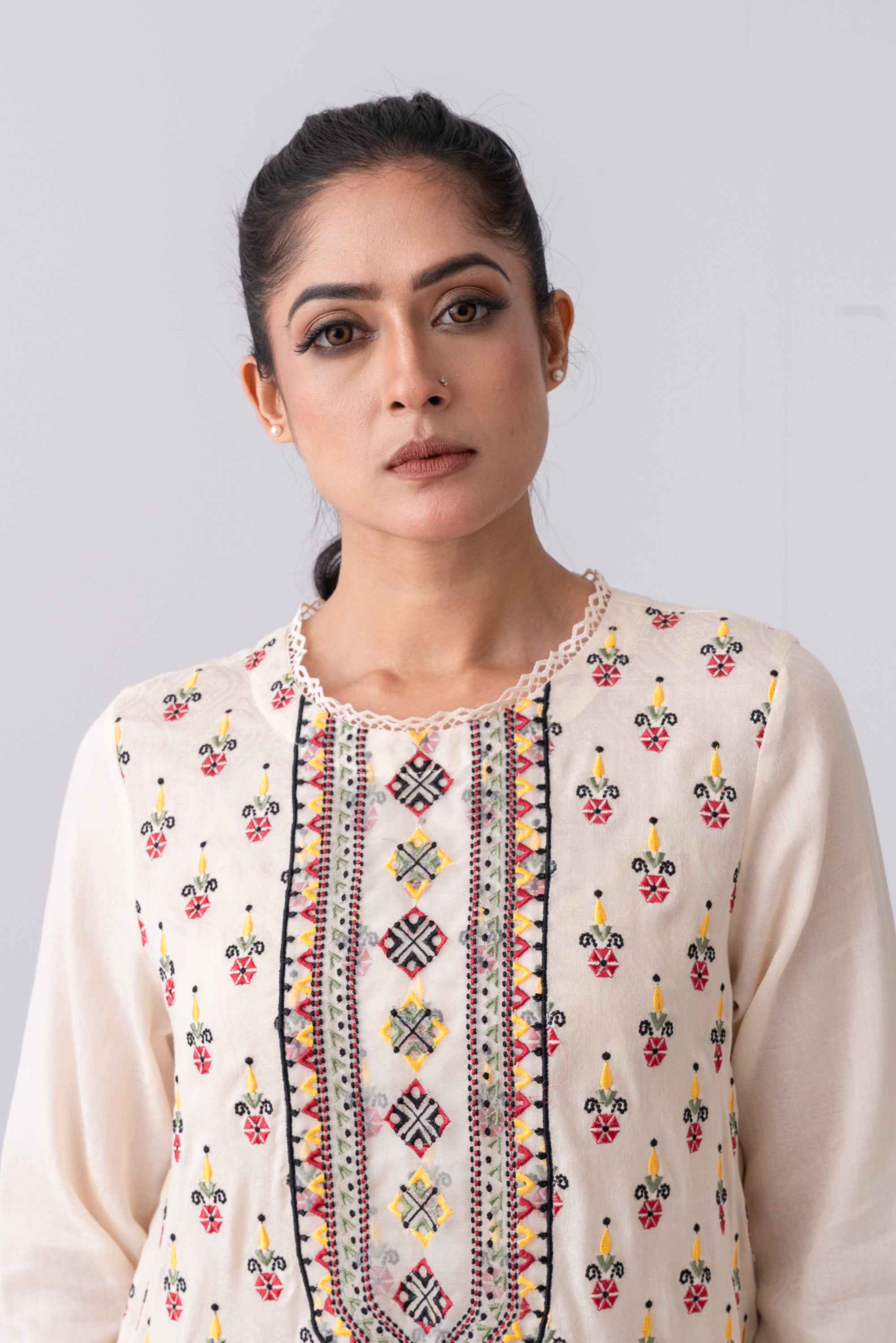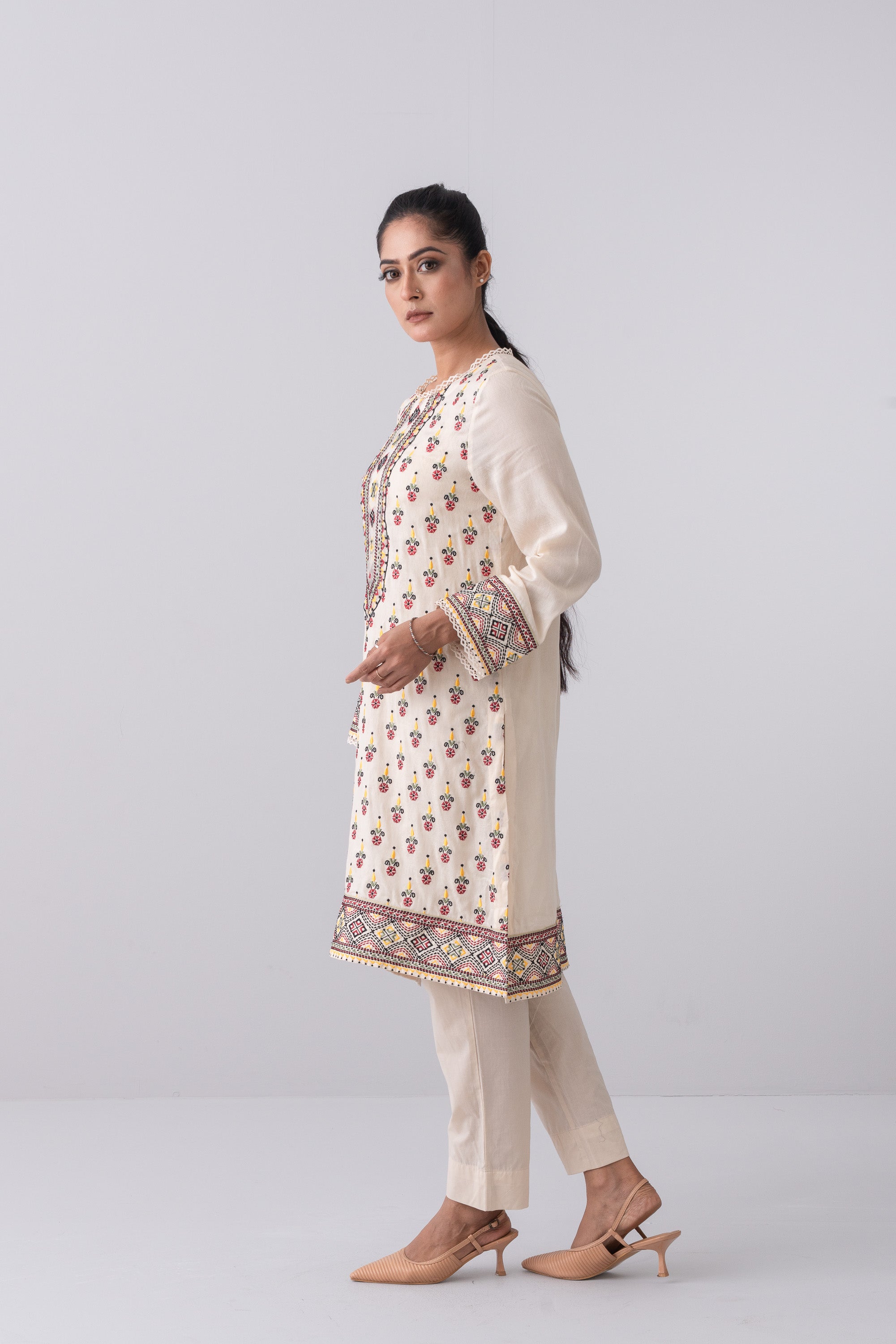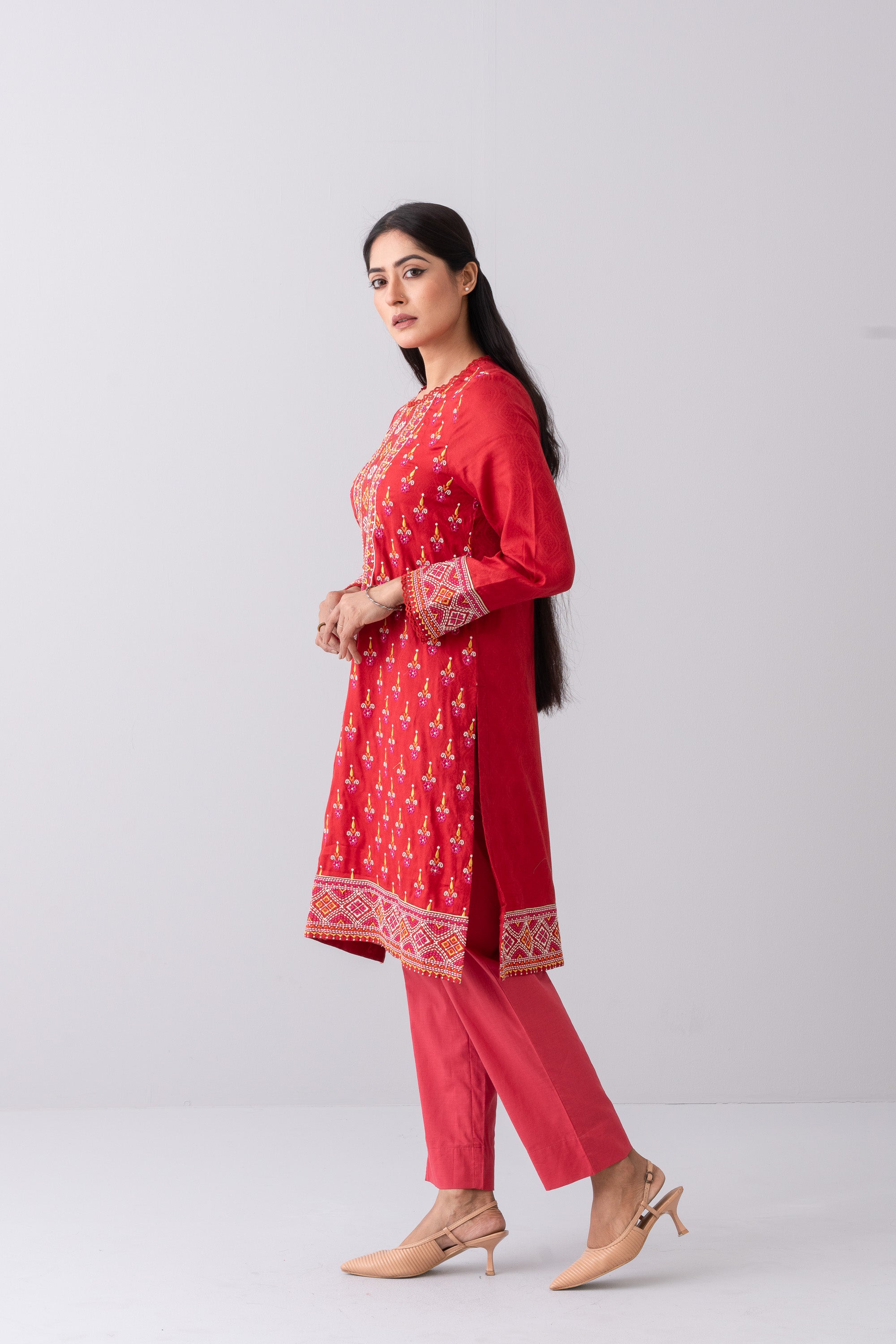 Elevate your elegance with our ready-to-wear One-Piece Lawn Kameez Suit, featuring intricate full embroidery on premium jacquard fabric, complemented by delicate lace detailing for a refined and graceful look. This piece is perfect for special occasions or adding a touch of luxury to your everyday wardrobe.