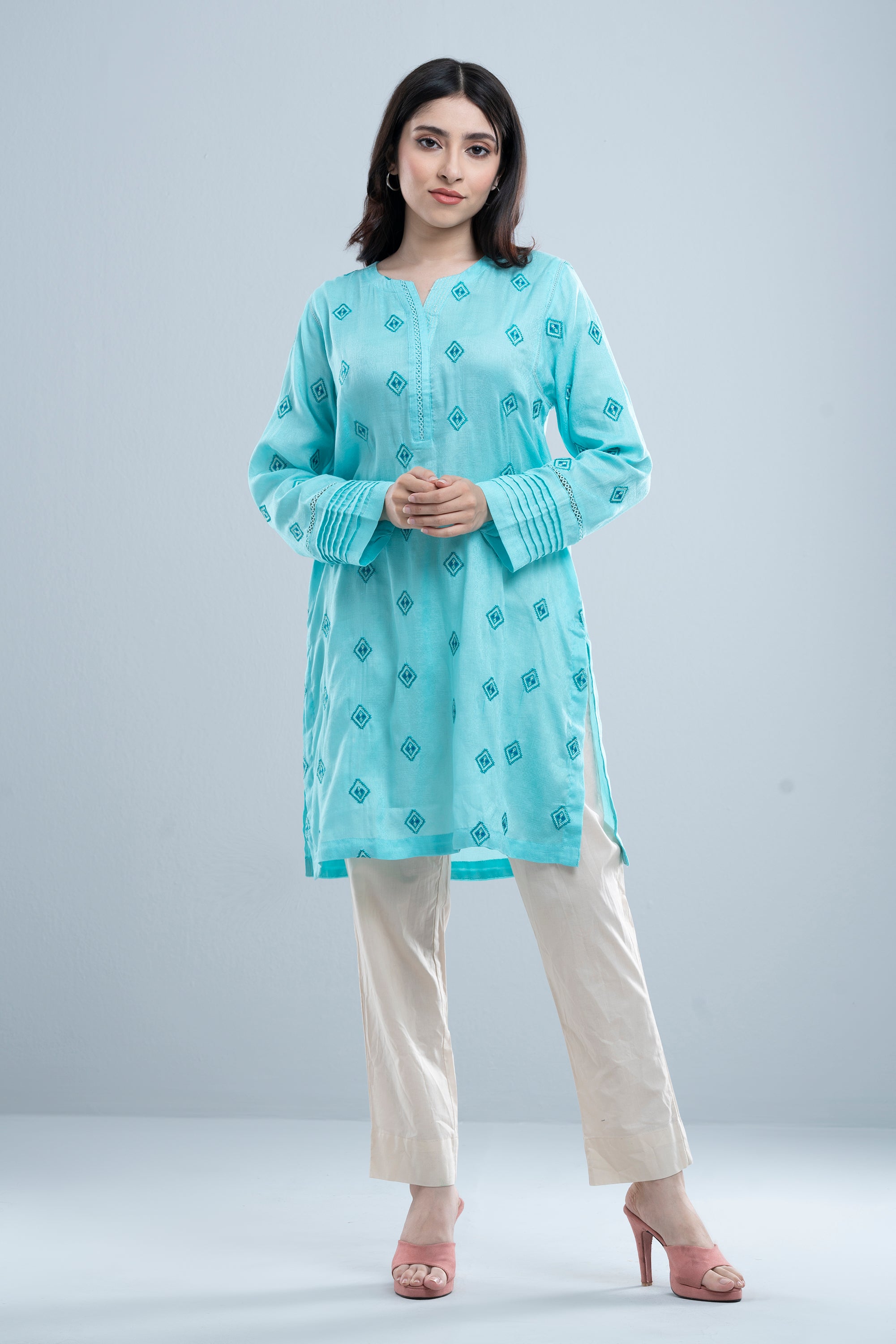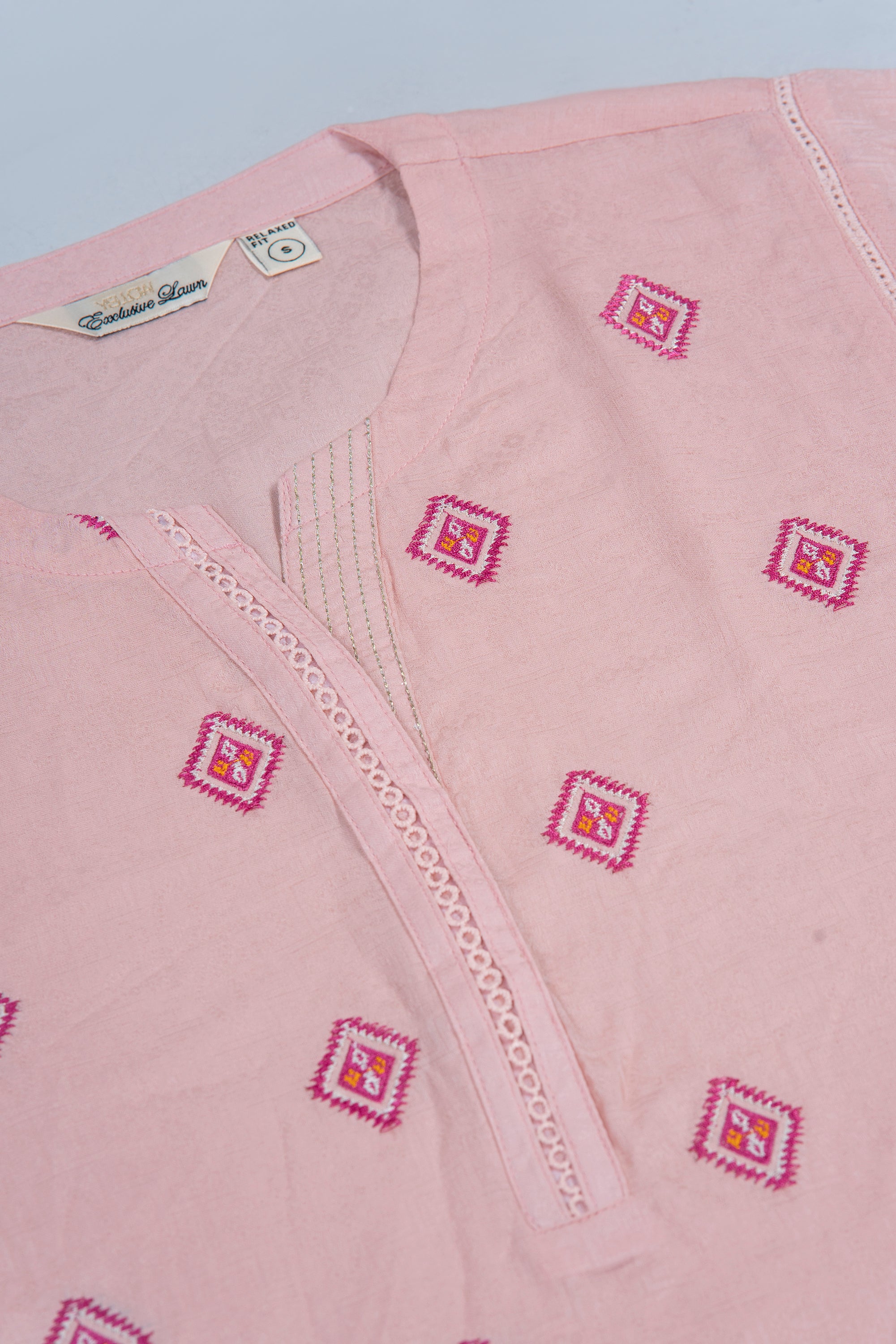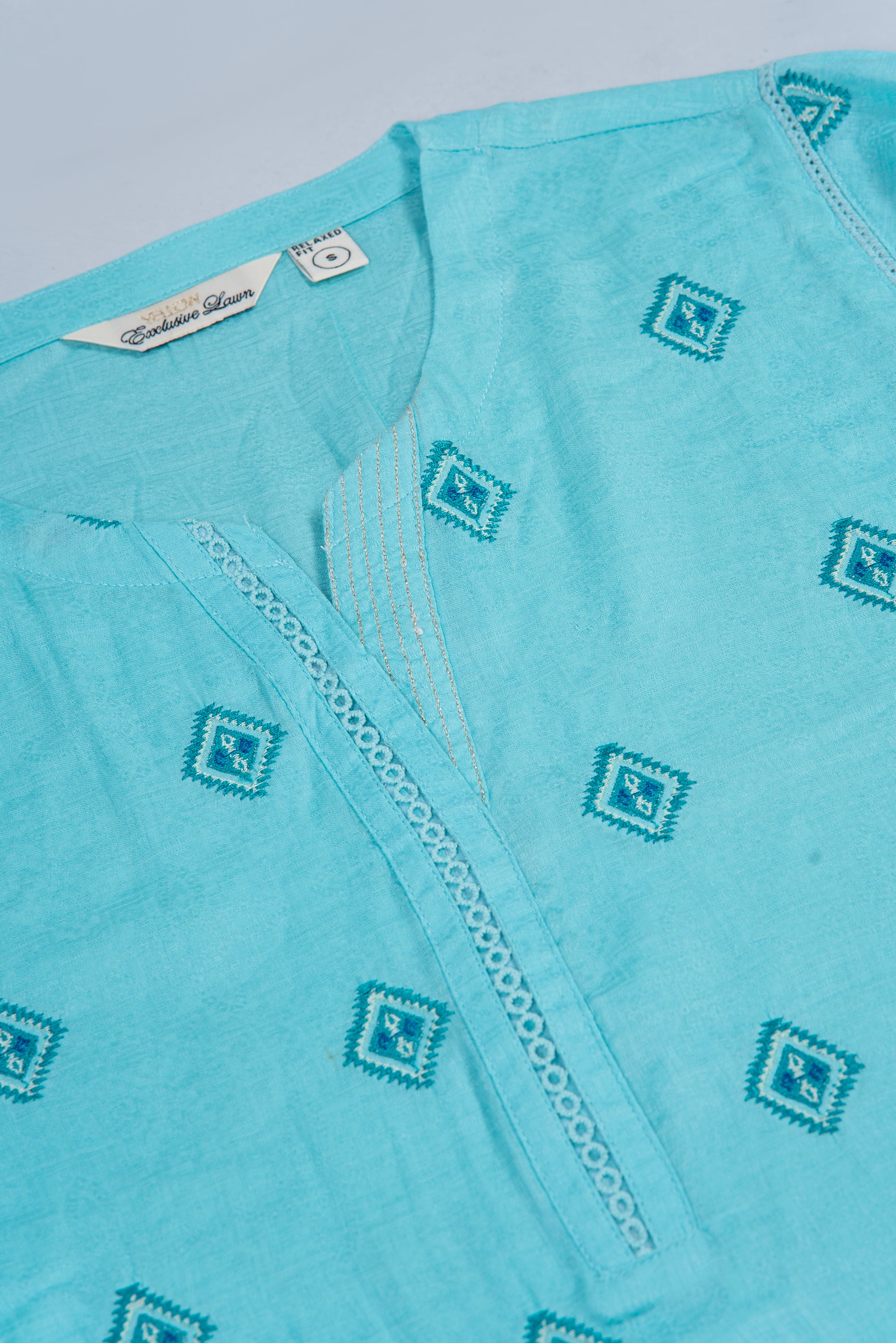 Elevate your elegance with our ready-to-wear One-Piece Lawn Kameez Suit, featuring intricate full embroidery on premium jacquard fabric, complemented by square armhole, delicate lace, golden lurex chain stitch at placket and pintucks detailingat sleeves for a refined and graceful look.this piece is perfect for special occasions or adding a touch of luxury to your everyday wardrobe.