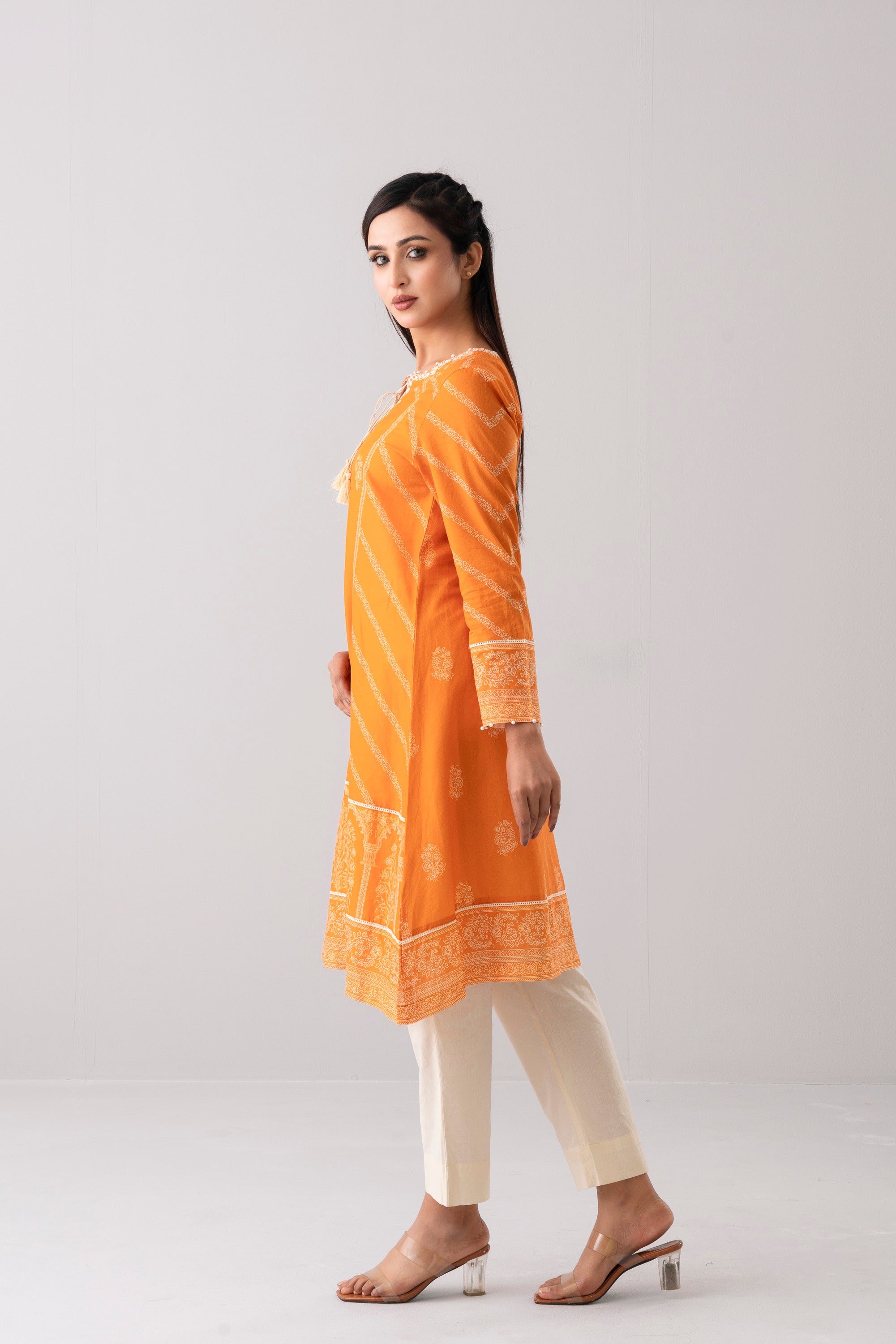 Elevate your elegance with our stunning ready-to-wear 1 Piece Lawn Kameez. Featuring an A-line cut with a graceful flare. This piece is adorned with embroidery, keyhole, tassels, and border detailing. Combining comfort and elegance, perfect for special occasions or adds luxury to your everyday wardrobe.