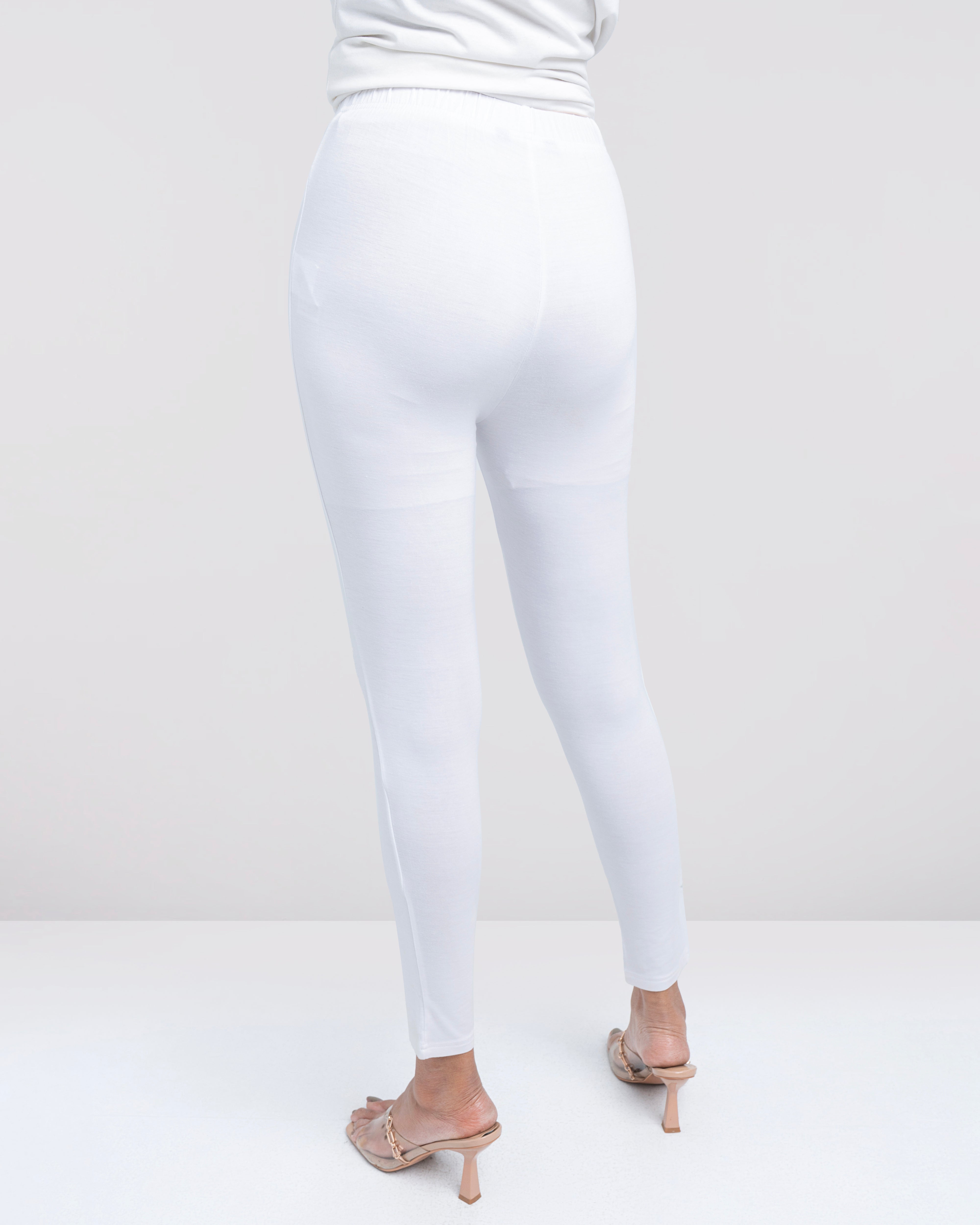 Designed for a sleek and flattering silhouette, these skinny-fit leggings offer exceptional comfort and flexibility. Crafted from a soft viscose spandex fabric, they provide a smooth stretch and a perfect fit that moves with you. Ideal for everyday wear, these knitted leggings combine style, comfort, and versatility for any casual or active occasion.