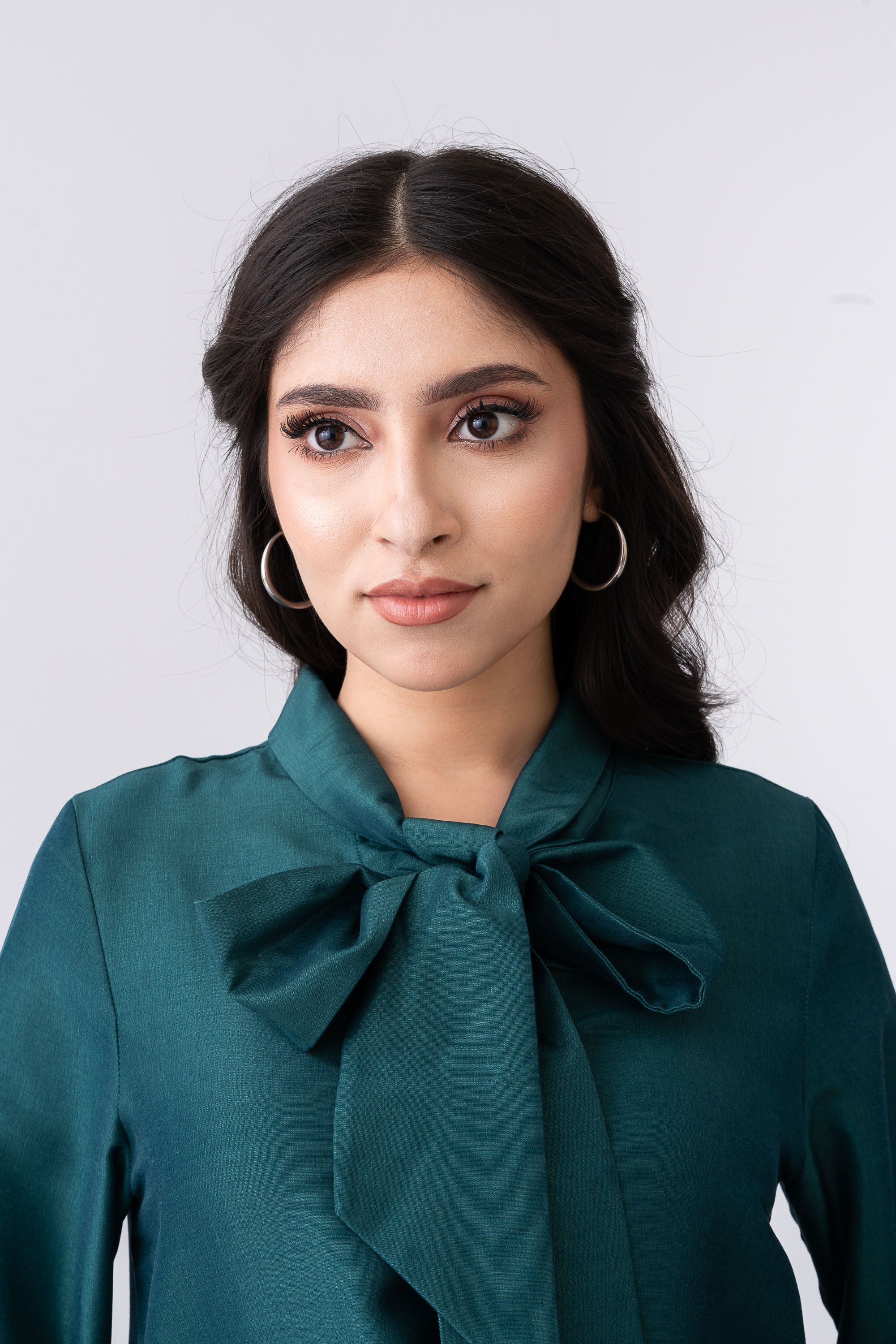 This mid-length coordinated set is a perfect blend of elegance and comfort, featuring a tunic with three-quarter sleeves finished with refined cuffs that add structure to the relaxed silhouette. The neckline is adorned with delicate tie details, offering a soft, feminine touch, while the rounded hemline enhances the flow and shape of the garment. Designed with ease and versatility in mind, the set includes matching straight-leg pants in the same fabric, creating a cohesive and polished look. Whether styled casually or dressed up, this ensemble offers a modern yet timeless appeal, ideal for effortless day-to-evening transitions.