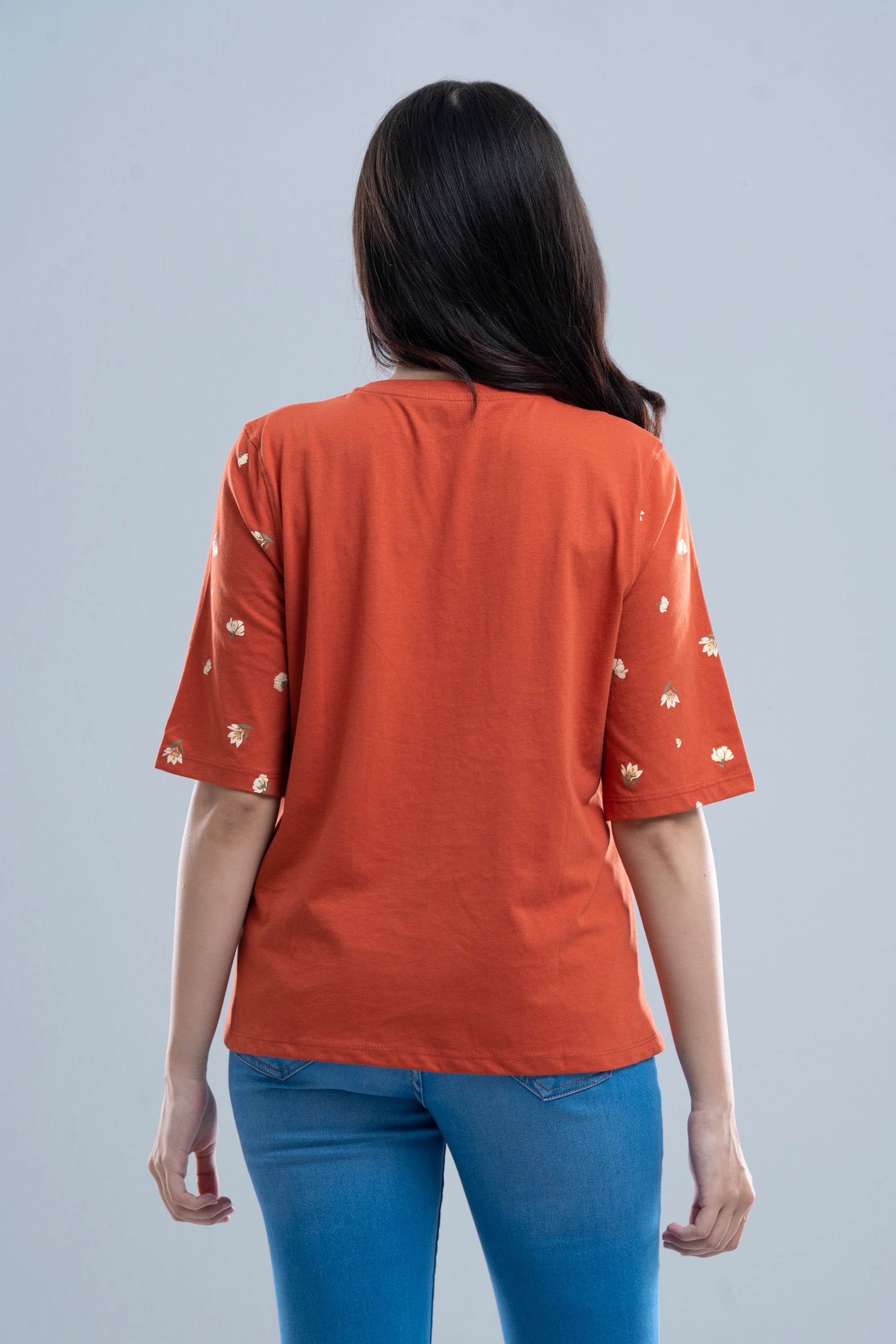 This everyday essential features a classic crew neckline and a comfortable, relaxed fit. Crafted from soft, breathable fabric, the T-shirt is adorned with an all-over floral print, adding a fresh, feminine touch to a basic silhouette. Perfect for casual styling, it pairs effortlessly with jeans, skirts, or layered looks for an easy, laid-back vibe.